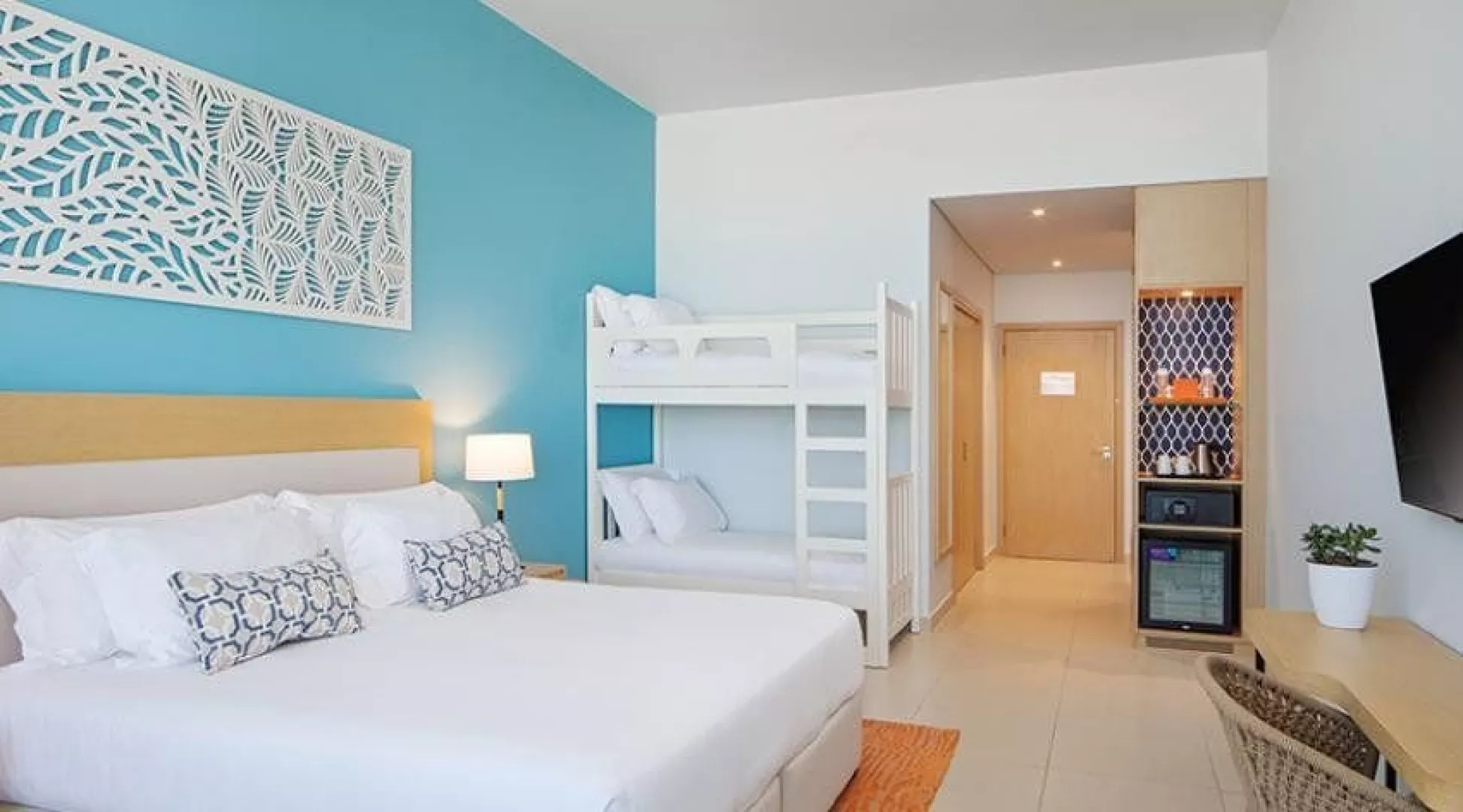 Izby typu Superior sú dvojlôžkové a majú vlastné sociálne zariadenie (WC, vaňa alebo sprchový kút, sušič vlasov), klimatizáciu, minibar, SAT TV, trezor, zariadenie na prípravu kávy a čaju, balkón alebo terasu. Maximálna obsadenosť izieb sú 2 dospelé osoby a 2 deti do 11 rokov; prístelka formou rozkladacej pohovky. Izby s výhľadom na more alebo na panorámu sú k dispozícii za príplatok. Rodinné izby obsahujú rovnaké vybavenie ako izby Superior, ale majú 2 dvojlôžkové postele (typ queen). Na požiadanie sú k dispozícii aj izby s palandami alebo suity.