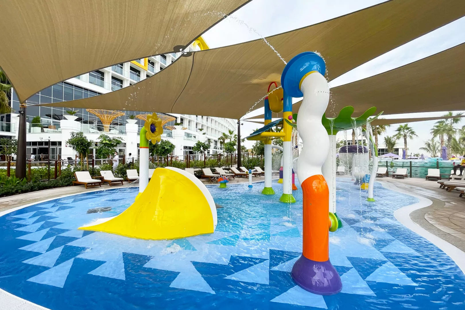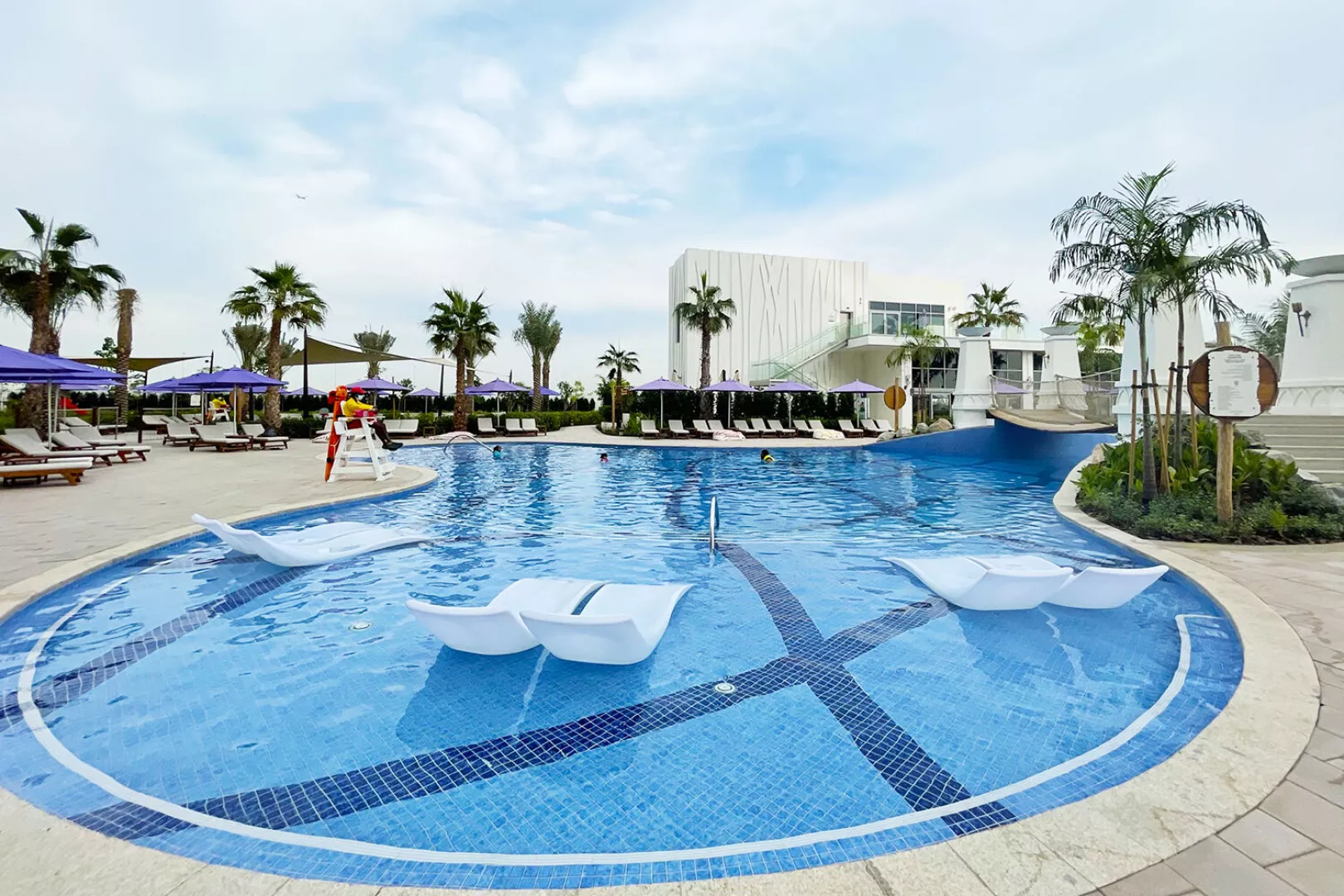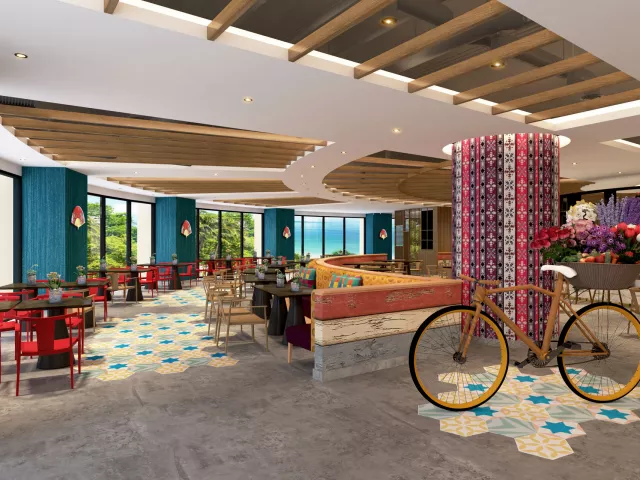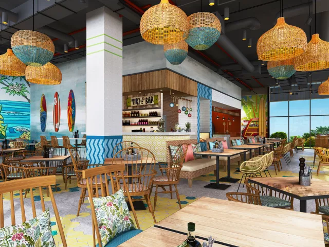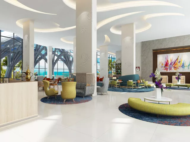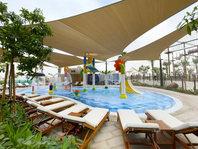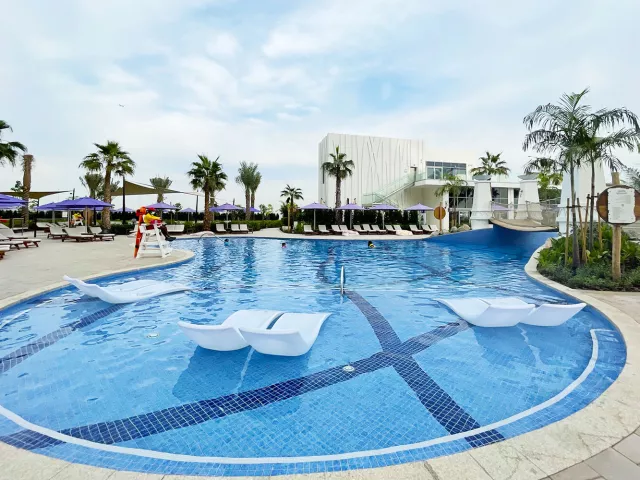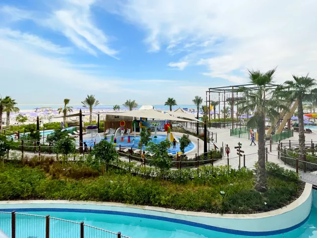 Vstupná hala s recepciou, hlavná reštaurácia a niekoľko à la carte reštaurácií (stredomorská, thajská, servírujúca morské plody), bar pri bazéne, lobby bar, sisha lounge, konferenčné miestnosti a detský klub. Vodný park s línou riekou a 3 vonkajšími bazénmi, z toho 1 vyhradený iba pre dospelých. WiFi pripojenie je zdarma.