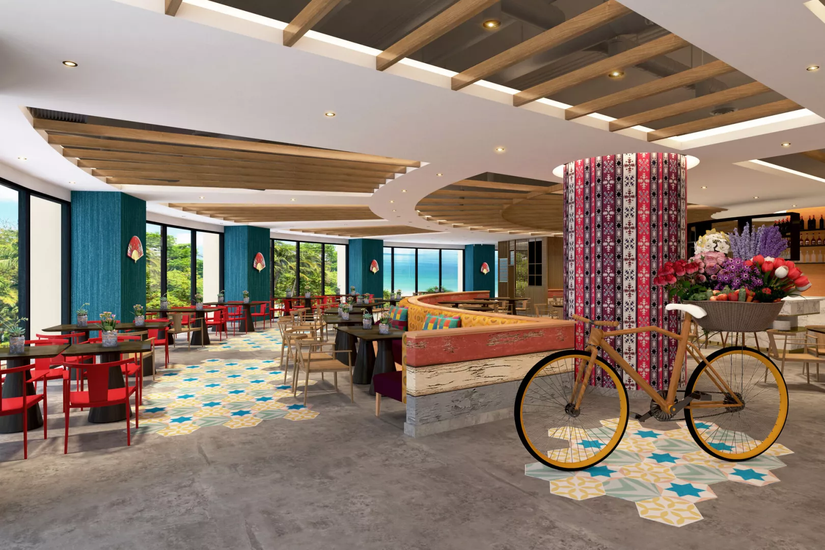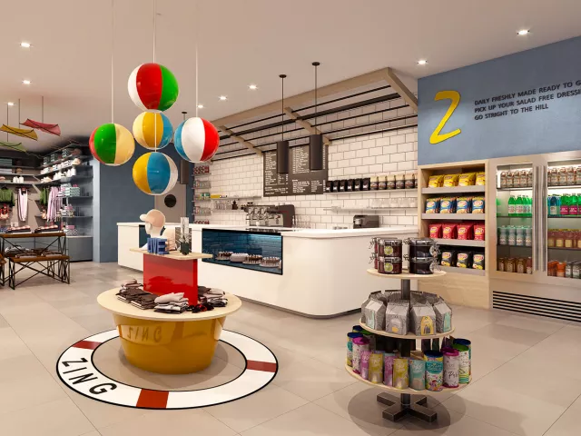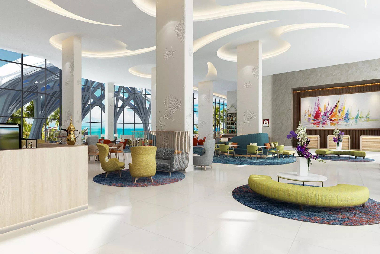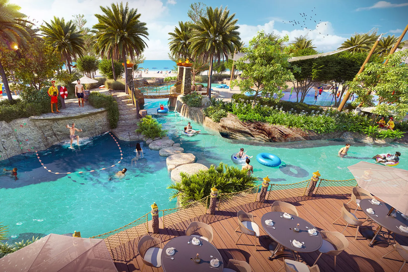 Vstupná hala s recepciou, hlavná reštaurácia a niekoľko à la carte reštaurácií (stredomorská, thajská, servírujúca morské plody), bar pri bazéne, lobby bar, sisha lounge, konferenčné miestnosti a detský klub. Vodný park s línou riekou a 3 vonkajšími bazénmi, z toho 1 vyhradený iba pre dospelých. WiFi pripojenie je zdarma.