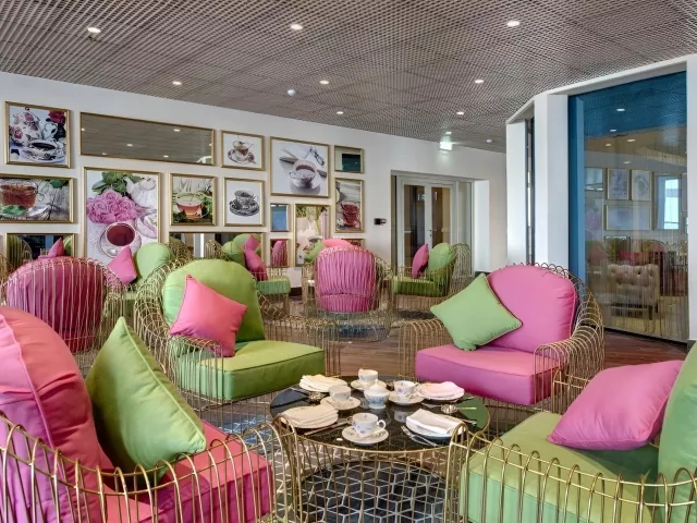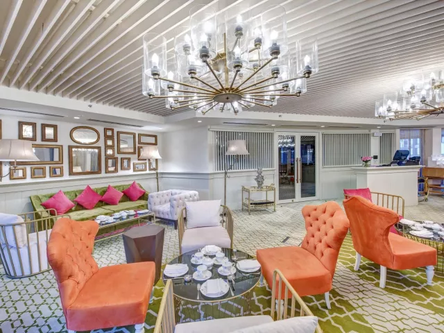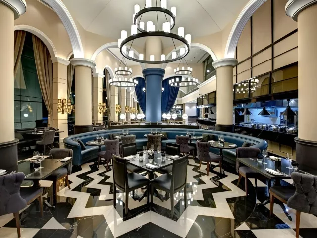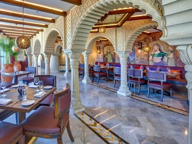 Vstupná hala s reštauráciou, luxusná britská a indická reštaurácia, steakhouse, bar so širokým výberom Martini, čajový salónik ponúkajúci tradičný anglický čaj, fajčiarsky salónik, krytý bazén, 2 vonkajšie bazény, konferenčná miestnosť, salón krásy