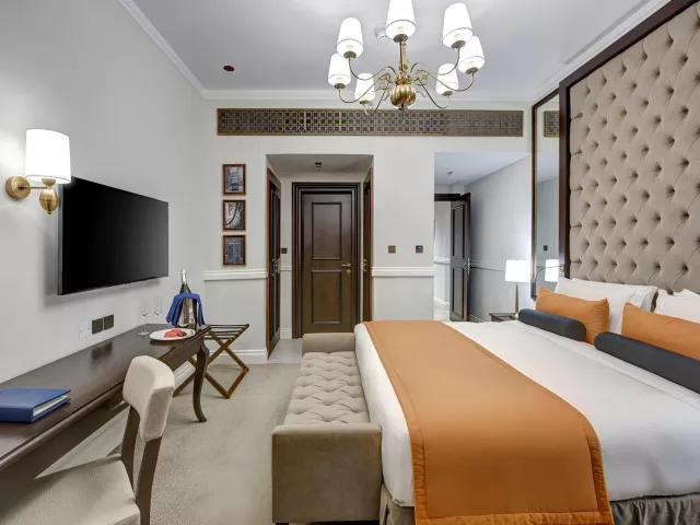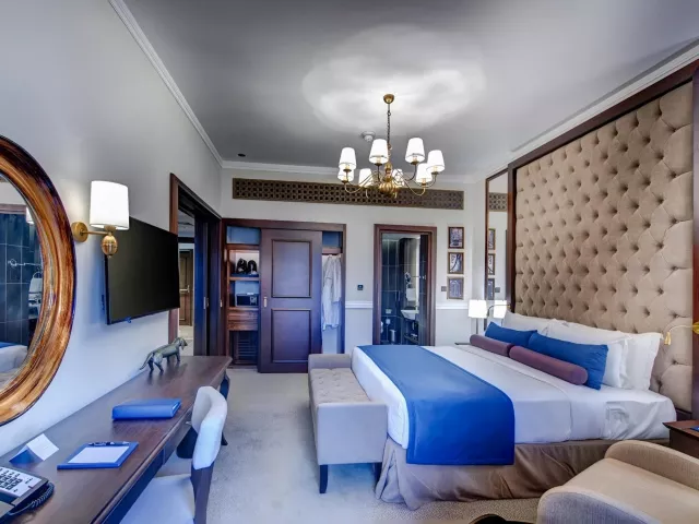 Dvojlôžková izba, Deluxe: kúpeľňa/WC, klimatizácia, TV/sat., set na prípravu kávy a čaju, minibar, trezor, žehlička a žehliaca doska, k dispozícii buď jedna posteľ veľkosti king alebo dve postele twin. Ostatné typy izieb (pokiaľ nie je uvedené inak, majú izby vyššie uvedené vybavenie) Dvojlôžková izba, Premium): priestrannejšie, k dispozícii jedna posteľ veľkosti king a rozkladací gauč. U všetkých izieb platí, že na izbe nie je možná žiadna prístelka, je potrebné využiť existujúcu konfiguráciu lôžok