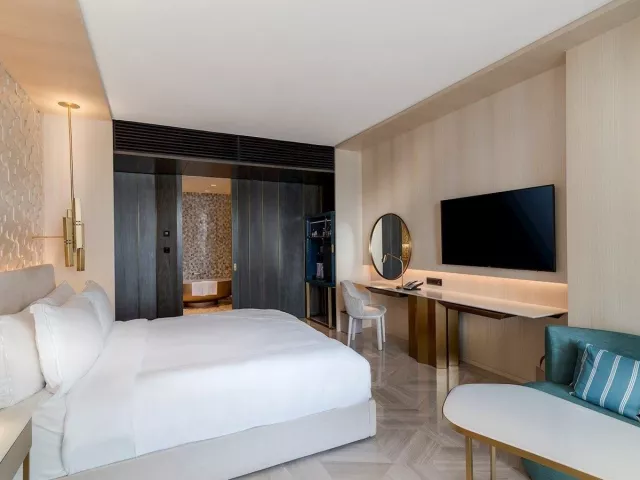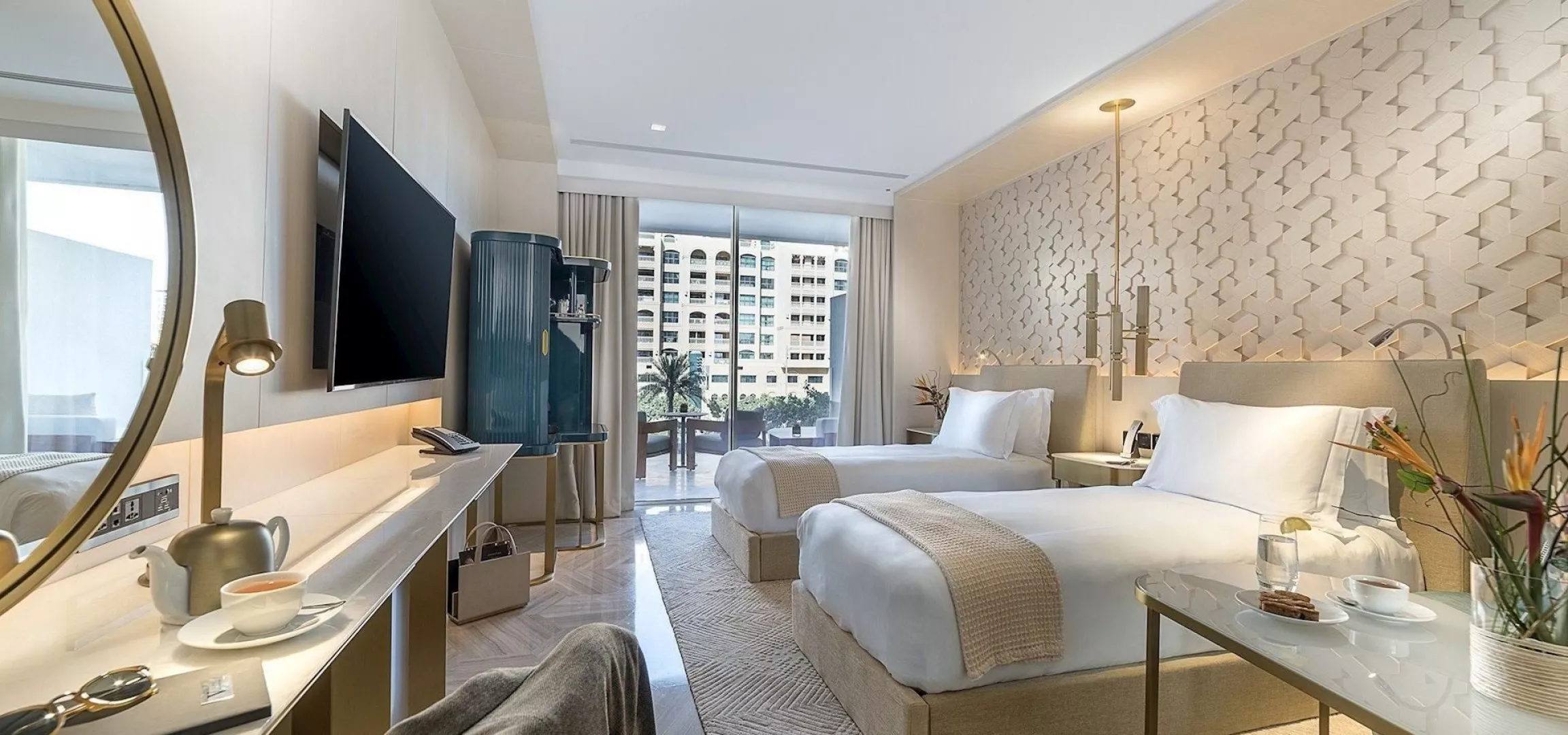 Hotel sa nachádza priamo pri známej promenáde West Beach, kde nájdete množstvo plážových klubov a reštaurácií. Táto lokalita je ideálna pre tých, ktorí si chcú vychutnať zábavu počas pobytu. Je vzdialený približne 35 km od letiska DXB a 45 km od letiska DWC.