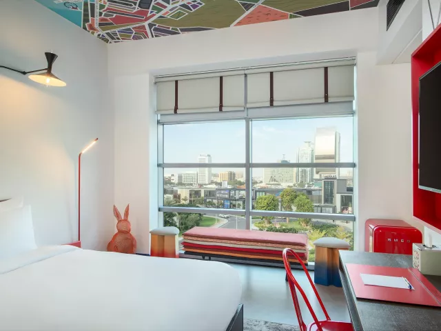Dvojlôžková izba kúpeľňa/WC (sušič vlasov) klimatizácia telefón TV/sat. set na prípravu čaju a kávy minibar Wifi zadarmo žehlička, žehliaca doska trezor posteľ veľkosti Queen (160x200) Ostatné typy izieb (pokiaľ nie je uvedené inak, majú izby vyššie uvedené vybavenie) Dvojlôžková izba, výhľad, King: posteľ veľkosti King (180x200)