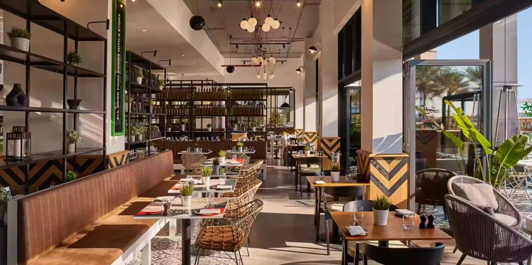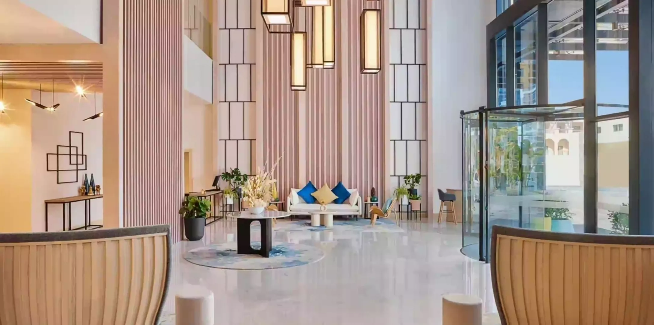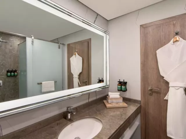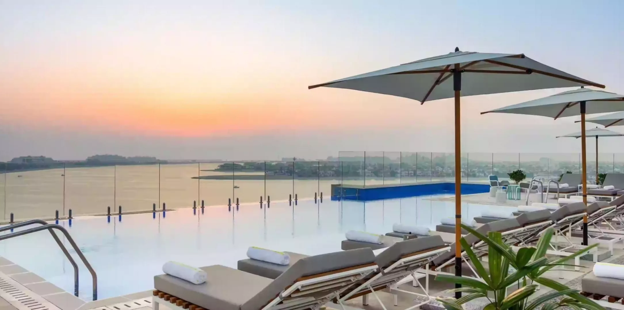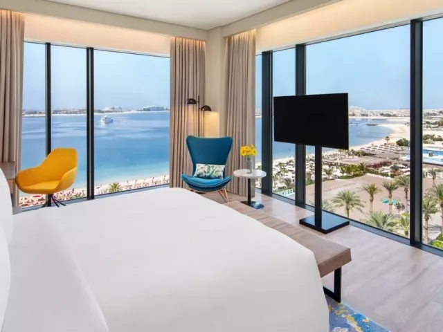 Hotel leží priamo pri známej promenáde West Beach, kde sa nachádzajú mnohé plážové kluby a reštaurácie, otvorené aj pre návštevníkov z iných hotelov. Ideálne miesto pre tých, ktorí sa chcú baviť a užiť si Dubaj. Nákupné centrum Nakheel Mall sa nachádza približne 1 km od hotela, zatiaľ čo vyhliadka The View at the Palm je na dosah ruky. Letiská DXB a DWC sú vzdialené 35 km a 45 km.