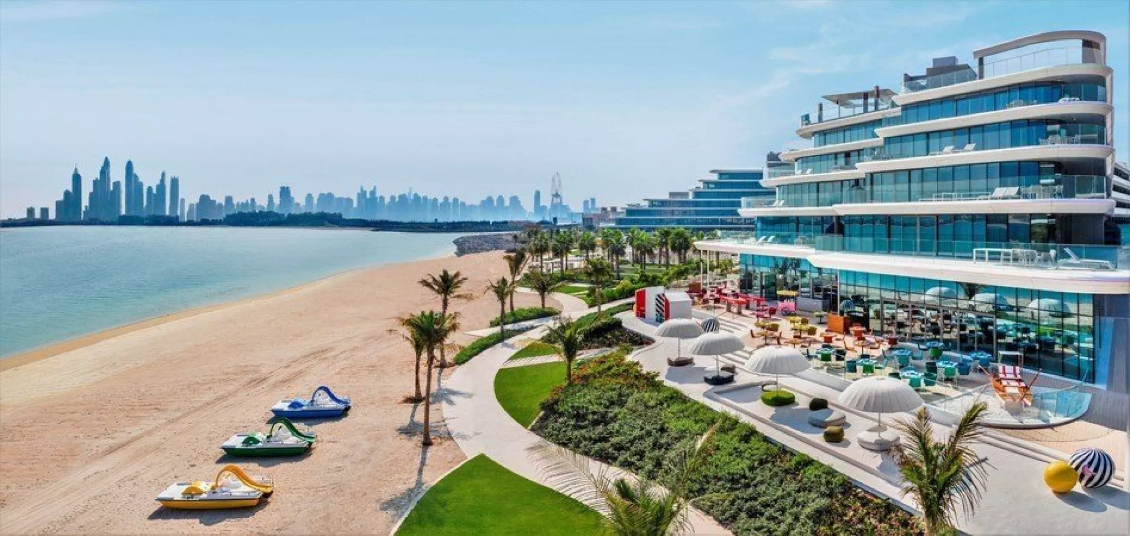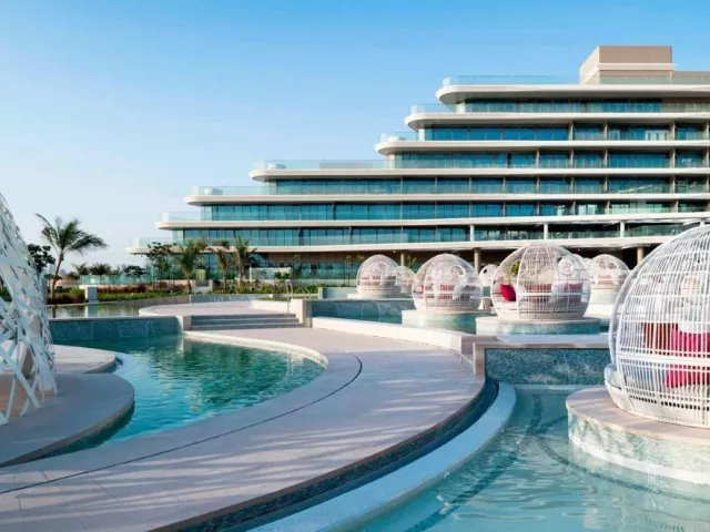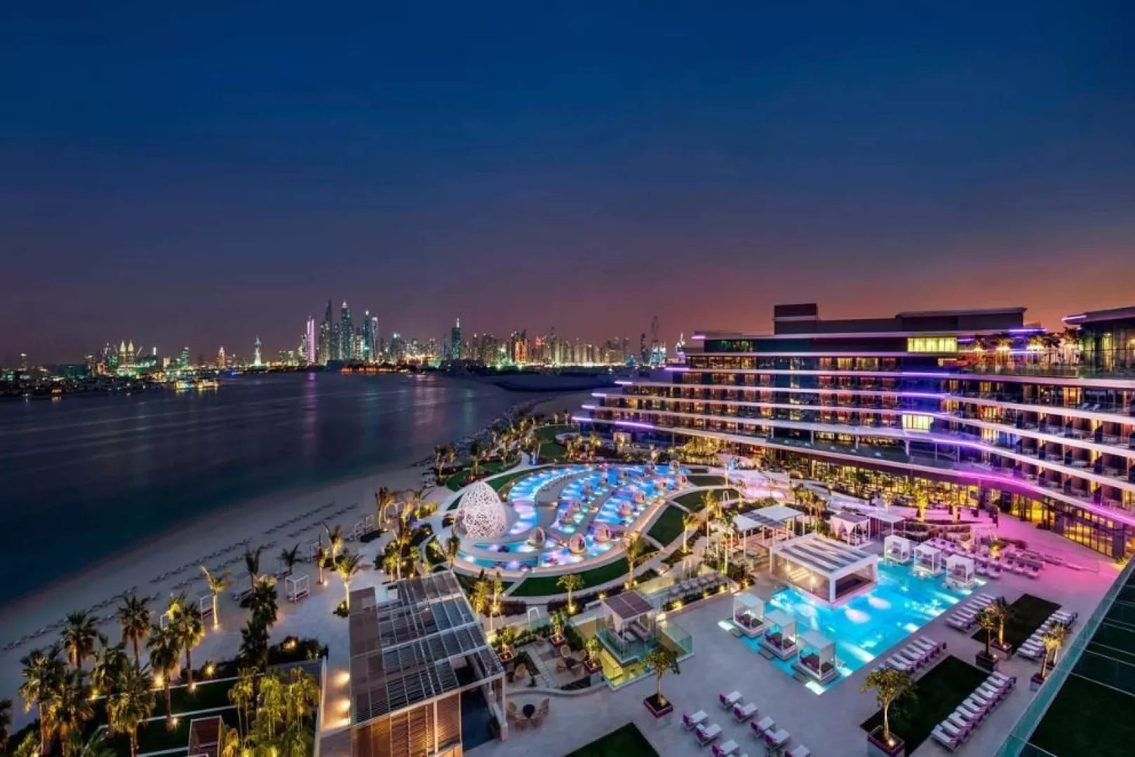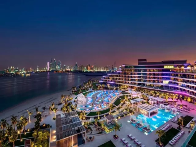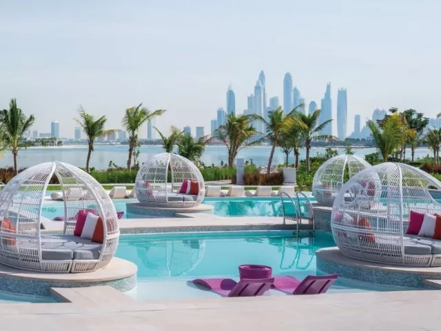 Hotel W Dubai The Palm sa nachádza na ikonickom umelo vytvorenom ostrove vo tvare palmy, The Palm Jumeirah. Turistické centrum s vyhláseným nákupným centrom Dubai Mall, fontánou a najvyššou budovou sveta Burj Khalifa je vzdialené približne 20 km od hotela. Medzinárodné letisko DXB je vzdialené cca 40 km a medzinárodné letisko DWC cca 50 km od hotela.
