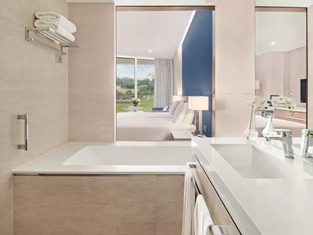 Dvojlôžková izba/Dvojlôžková izba Deluxe: kúpeľňa/WC klimatizácia elektrická kanvica kávovar minibar za poplatok telefón TV/satelit. trezor balkón Ďalšie typy izieb (ak nie je uvedené inak, všetky izby majú vyššie uvedené vybavenie) Dvojlôžková izba s výhľadom na golfové ihrisko: výhľad na golfové ihrisko. Vo všetkých izbách je možná len jedna prístelka