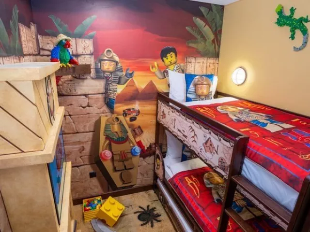 Hotel pozostáva z 250 tematicky zariadených izieb, ktoré môžu ubytovať až 5 osôb (max. 3 dospelí, pre deti sú k dispozícii poschodové postele v samostatnej časti). Izby sú vybavené televíziou, telefónom, rýchlovarnou kanvicou, trezormi a minichladničkami. K dispozícii je vlastné sociálne zariadenie (WC, vaňa alebo sprchový kút, vysúšač vlasov). Izby typu Fully Theme majú viac tematických doplnkov a dizajnu.