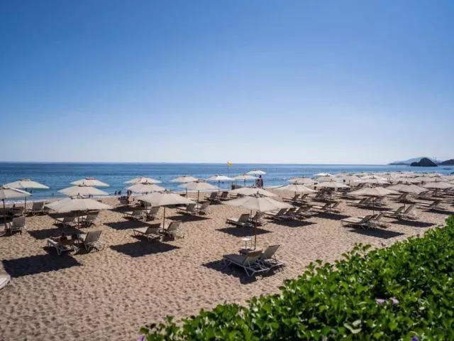 Hostia môžu využiť súkromnú piesočnú pláž priamo pri hoteli. Slnečníky a lehátka sú k dispozícii zdarma.