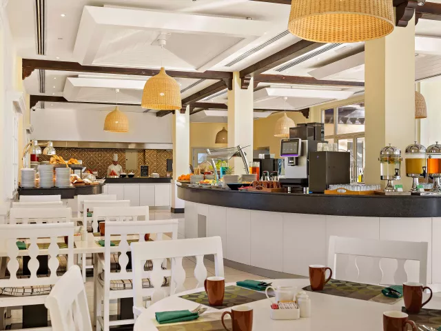 Hotel ponúka all inclusive služby, ktoré zahŕňajú raňajky, obed a večeru v hlavnej reštaurácii (Market Place). Alkoholické a nealkoholické nápoje sú k dispozícii počas obedov a během dňa v Liquid Pool Bar. Bar na pláži nie je zahrnutý v all inclusive.
