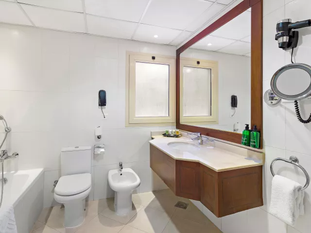Dvojlôžková izba má telefón, TV/sat, trezor, minibar, kúpeľňu/WC (sušič vlasov), set na prípravu kávy a čaju, wifi, žehličku a žehliacu dosku. Izba má rozlohu 32 m² a je vybavená manželskou posteľou bez možnosti prístelky. Ostatné typy izieb, ako klasická dvojlôžková izba s balkónom a Luxus Junior, majú podobné vybavenie.