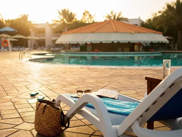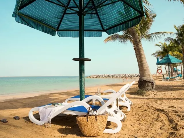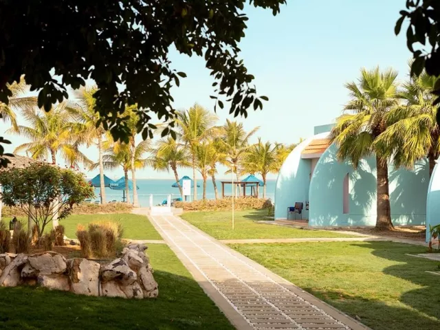 Rezort sa nachádza priamo pri piesočnatej pláži v emiráte Ras Al Khaimah. Budovy (chalety) sú umiestnené v starostlivo udržiavanej záhrade. Centrum je vzdialené cca 25 minút jazdy. Vodný park je vzdialený cca 20 minút jazdy od hotela.