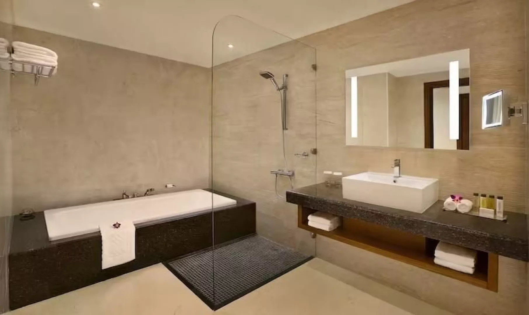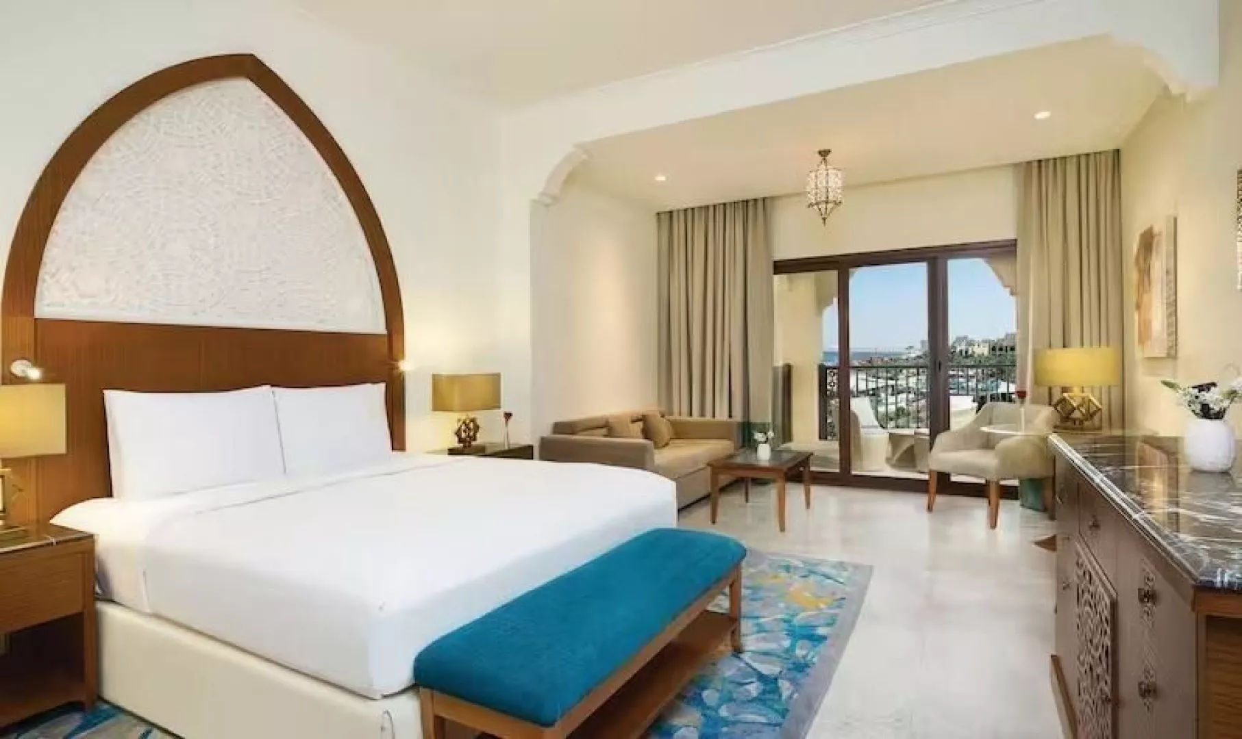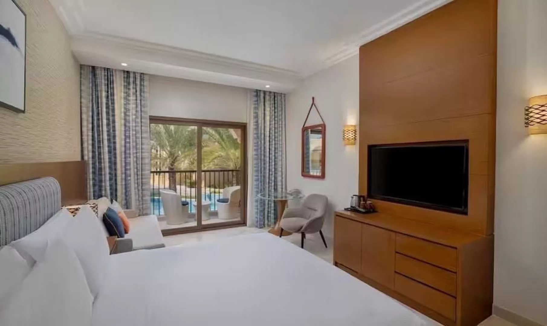 Hotel ponúka 275 elegantne zariadených priestranných izieb s balkónom alebo terasou. K dispozícii sú rôzne typy izieb, vrátane deluxe a rodinných, s možnosťou výhľadu na bazén alebo more. Vybavenie izieb zahŕňa klimatizáciu, LCD TV, minibar (za poplatok), kávovar a trezor.