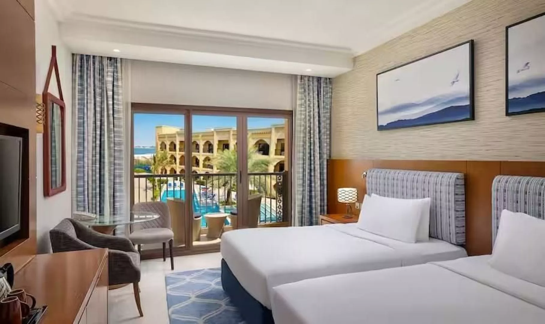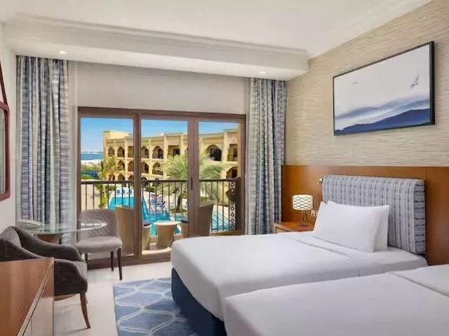 Doubletree by Hilton Resort & Spa Marjan Island sa nachádza na umelo vytvorenom ostrove Marjan v emiráte Ras Al Khaimah, približne 70 minút jazdy od medzinárodných letísk v Dubaji a Al Maktúme, ako aj 37 km od letiska Ras Al Khaimah. Súkromná 650 m dlhá piesočnatá pláž sa nachádza priamo pri hoteli.