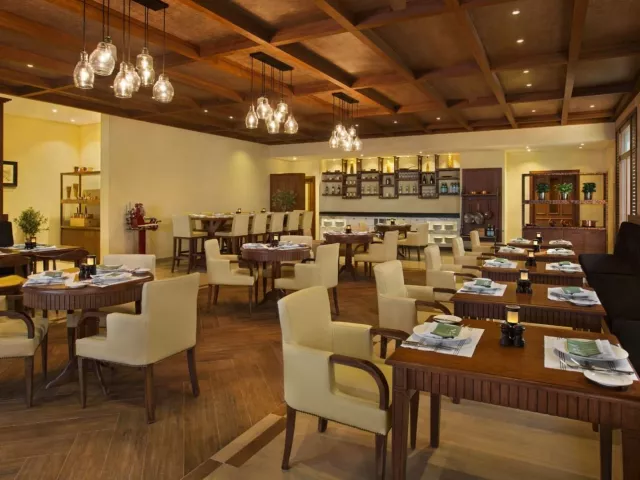 Rezort disponuje elegantnou vstupnou halou s recepciou, 13 reštauráciami a barmi, diskotékou, kaviarňou, moderným konferenčným zázemím a niekoľkými obchody. K dispozícii je aj priestranná slnečná terasa so 7 bazénmi vrátane len pre dospelých a s regulovanou teplotou, ako aj plávajúci bazén v mori.