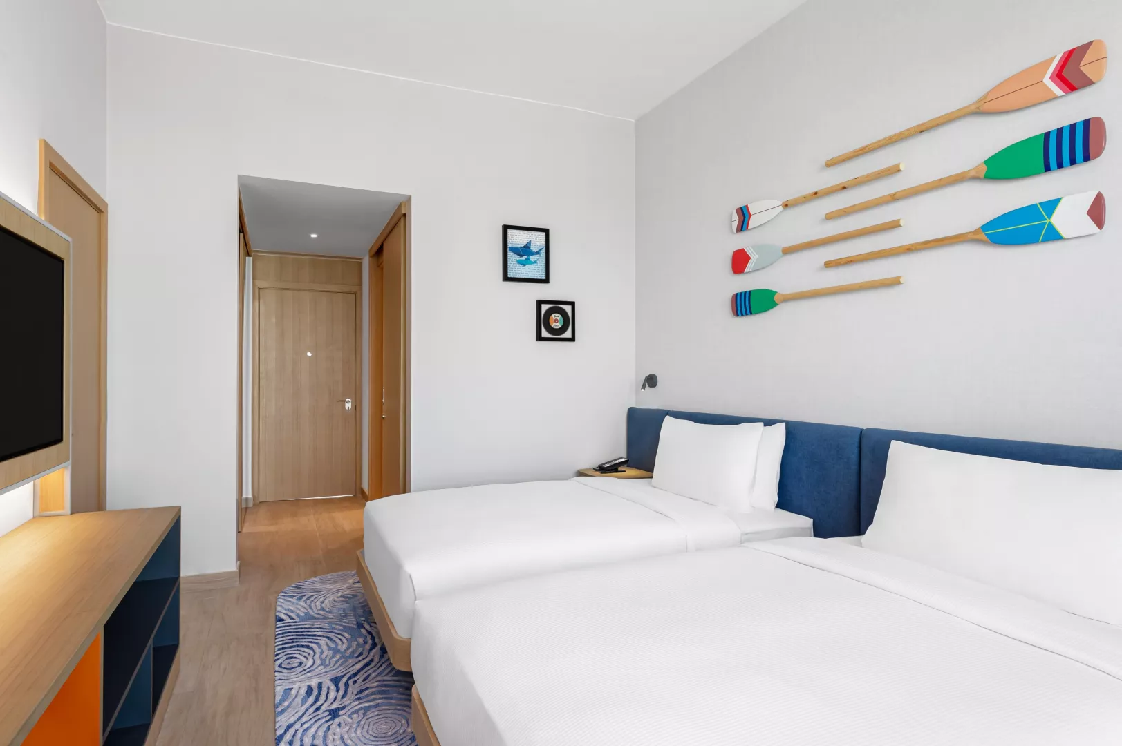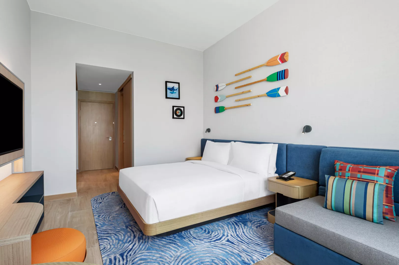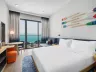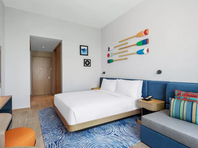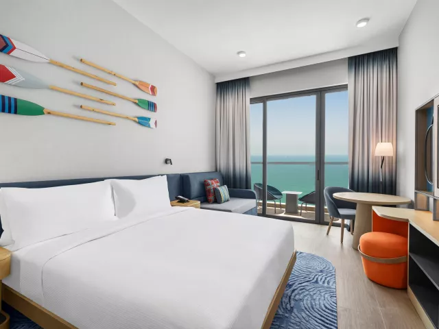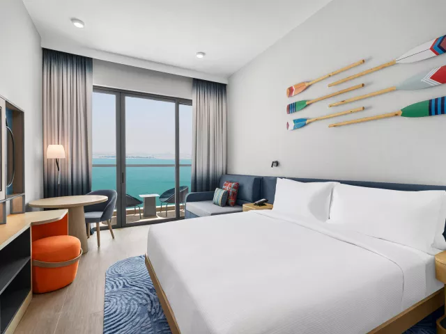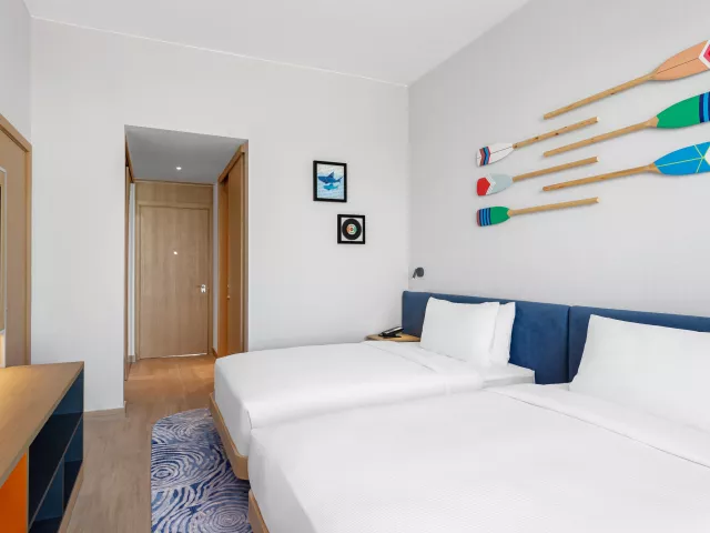 Dvojlôžková izba, Výhľad ostrov: kúpeľňa/WC so sprchou, klimatizácia, TV/sat., sušič vlasov, trezor, set na prípravu čaju a kávy, minichladnička, žehlička a žehliaca doska, balkón (nie je garantovaný). Ostatné typy izieb (pokiaľ nie je uvedené inak, majú izby vyššie uvedené vybavenie): Dvojlôžková izba, Výhľad na more: výhľad na more, balkón. Dvojlôžková izba, Premium, Výhľad mora: vyššie poschodie - od 5. poschodia, balkón. Rodinná izba: dve prepojené dvojlôžkové izby. Rodinná izba, Výhľad na more: dve prepojené dvojlôžkové izby, výhľad na more, balkón. Dvojlôžkové izby - pri obsadenosti 2+1/2+2/3+0 bude k dispozícii 2x posteľ veľkosti queen alebo 1 posteľ veľkosti king size + rozkladací gauč (150 cm na šírku). Izby majú veľkosť 28m2. Rodinné izby - 1 posteľ veľkosti king size + 2x posteľ typu twin.