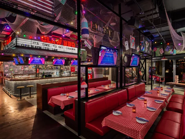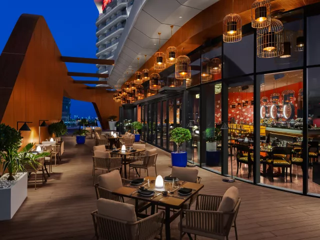 Vstupná hala s recepciou, 515 izieb, bufetová reštaurácia, 2 a la carte reštaurácie (barbecue a morské plody, ázijská), bar pri bazéne, bar, kaviareň, bazén (teplotne regulovaný).