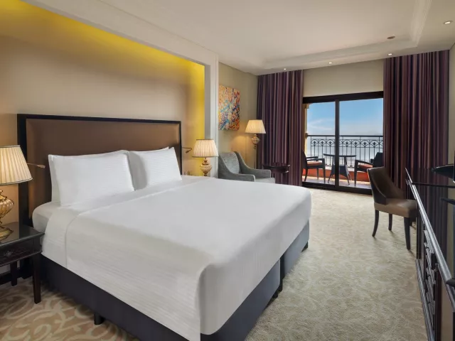 Dvojlôžková izba, Superior, strana mora: telefón, TV/sat., trezor, kúpeľňa/WC (sušič vlasov), balená voda, minibar, set na prípravu kávy a čaju, 40m2, jedna posteľ veľkosti King, wifi zadarmo Prísteľka nie je možná , v prípade 2+1 / 2+2 budú k dispozícii 2 queen bed.