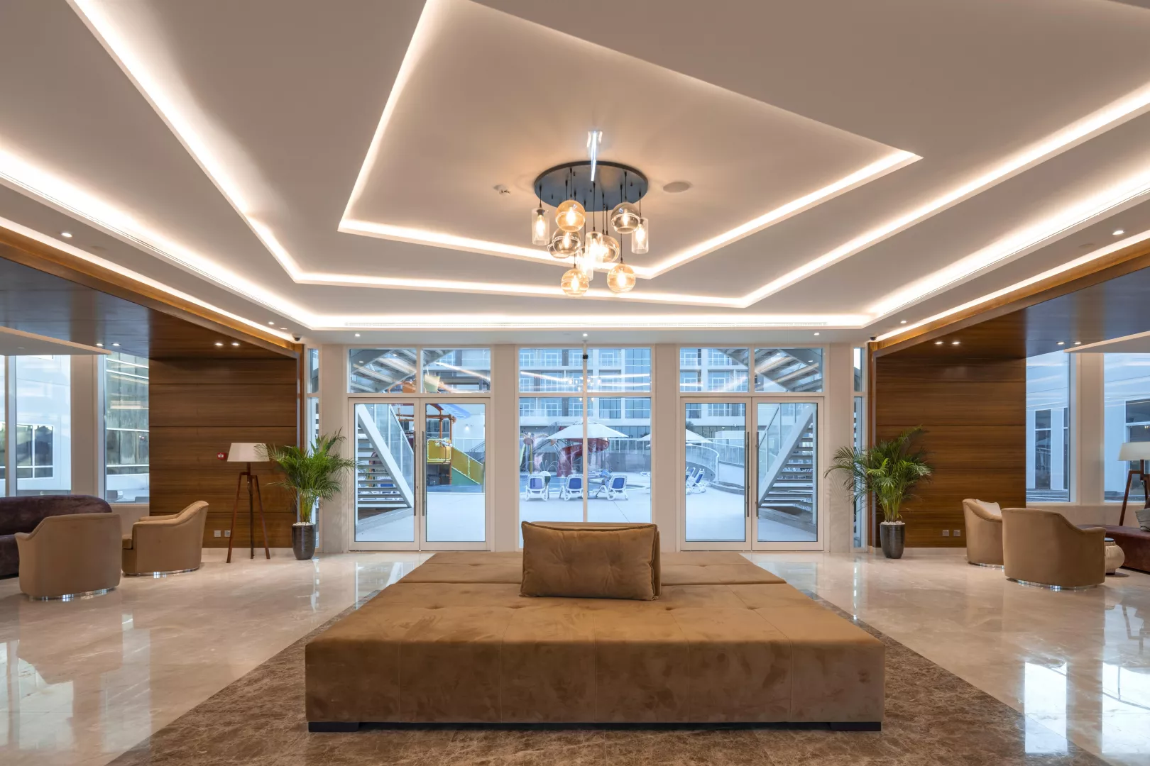 Vstupná hala hotela obsahuje recepciu, 2 reštaurácie a 3 bary. Súčasťou areálu sú aj konferenčné miestnosti, práčovňa, obchod so suvenírmi a 3 bazény. Na slnenie je k dispozícii terasa s lehátkami a slnečníkmi bez poplatku.