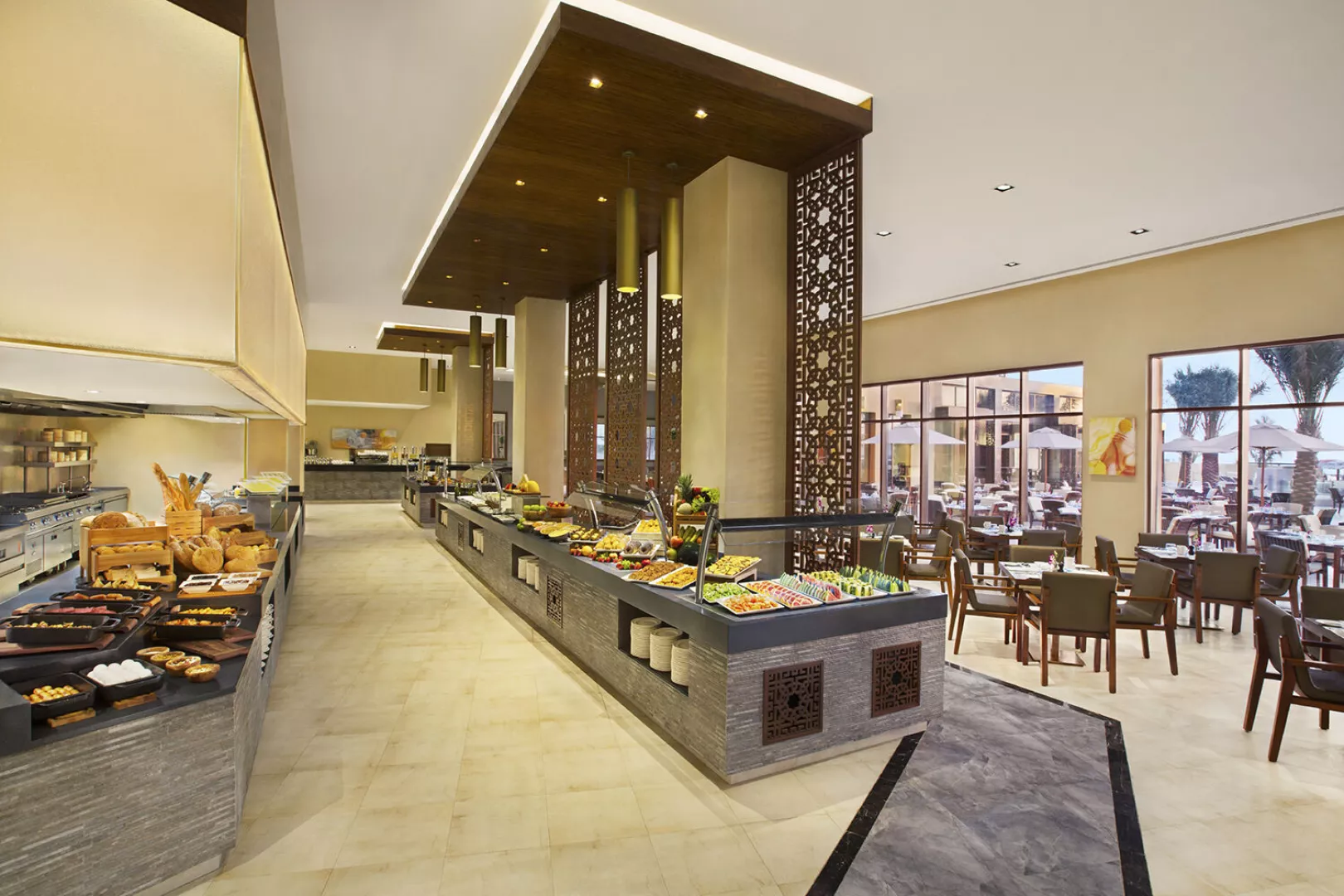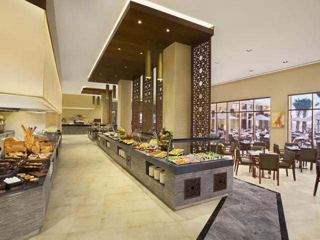 K dispozícii je polpenzia, all inclusive a ultra all inclusive. Raňajky sa podávajú v reštaurácii Al Marjan s možnosťou obedovania a večere v niekoľkých reštauráciách v areáli s rôznymi kuchyňami.