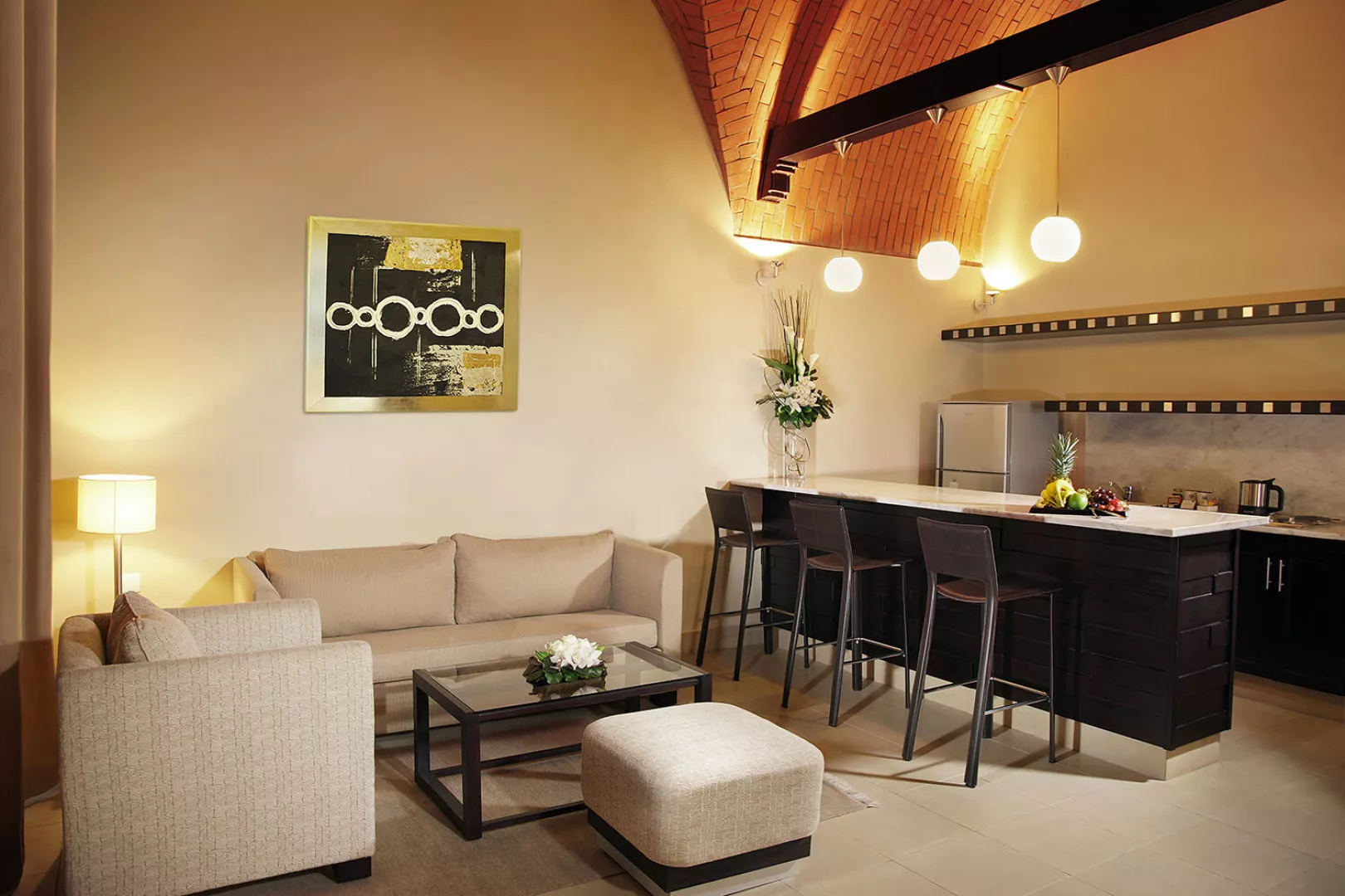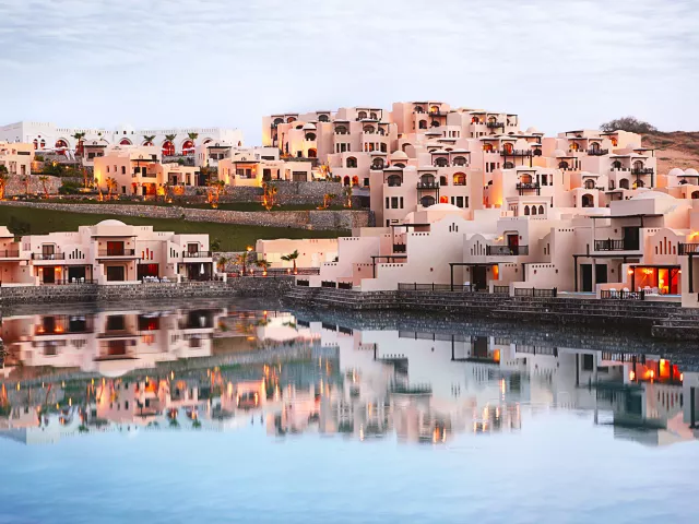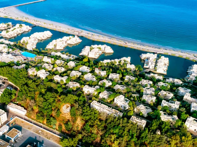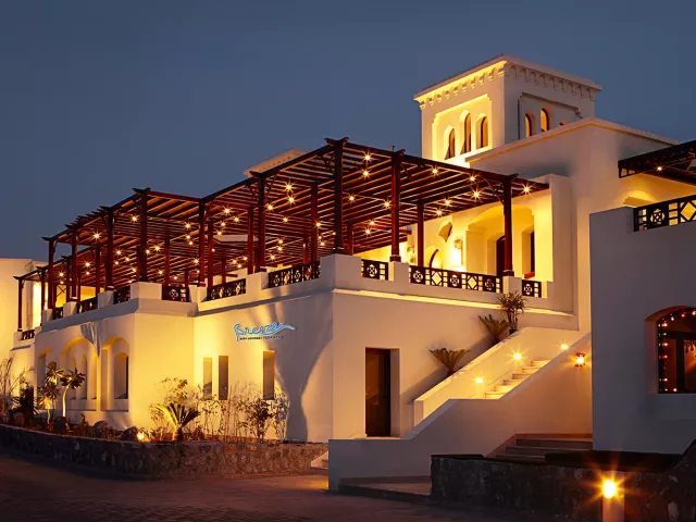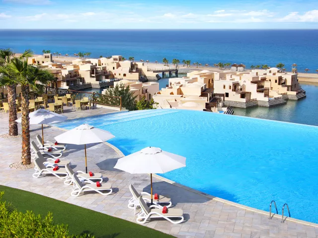 Rozsiahly komplex hotelových budov a rezidenčných víl je situovaný v tradičnom arabskom štýle priamo na pobreží Arabského zálivu, približne 10 km od Ras Al Khaimah. Z hotelu sú krásne výhľady na more, piesčitú pláž a jedinečnú lagunu.