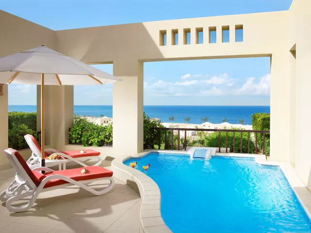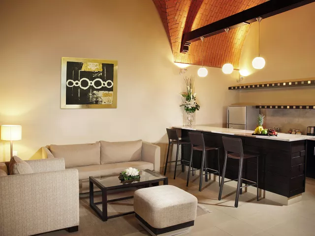 Izby sú klimatizované a vybavené televízorom, telefónom, minibarom (za poplatok), kávovarom, trezorom (zdarma) a Wi-Fi pripojením. Dvojlôžkové izby s rôznymi výhľadmi ponúkajú aj prístelky pre deti. Medzi dostupné typy izieb patrí dvojlôžková izba s výhľadom na bazén, do záhrady, lagúnu alebo priamo na more.