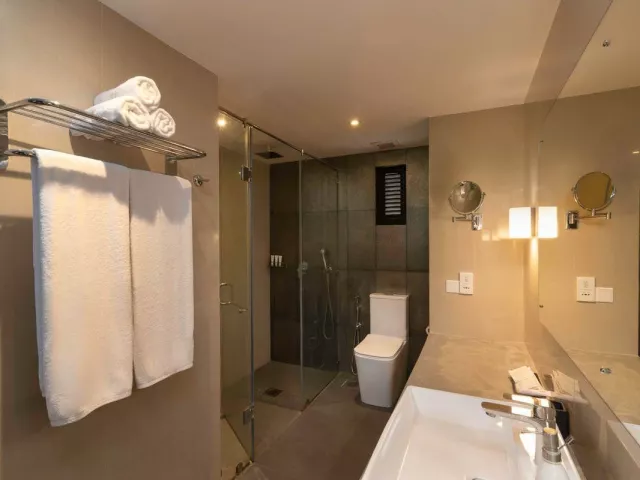 Izby sú vybavené vlastnou kúpeľňou (sprcha, WC, fén), klimatizáciou, súpravou na prípravu kávy a čaju, telefónom, trezorom, satelitnou televíziou, chladničkou, a bezplatným WiFi. Každá izba má balkón alebo terasu s výhľadom na oceán. K dispozícii sú aj priestrannejšie izby Superior až pre 3 dospelých, z ktorých každé dieťa do 5 rokov nemá nárok na prístelku, zatiaľ čo deti vo veku 5-12 rokov môžu využiť prístelku (1. dieťa) alebo zdieľať lôžko s dospelými (2. dieťa).