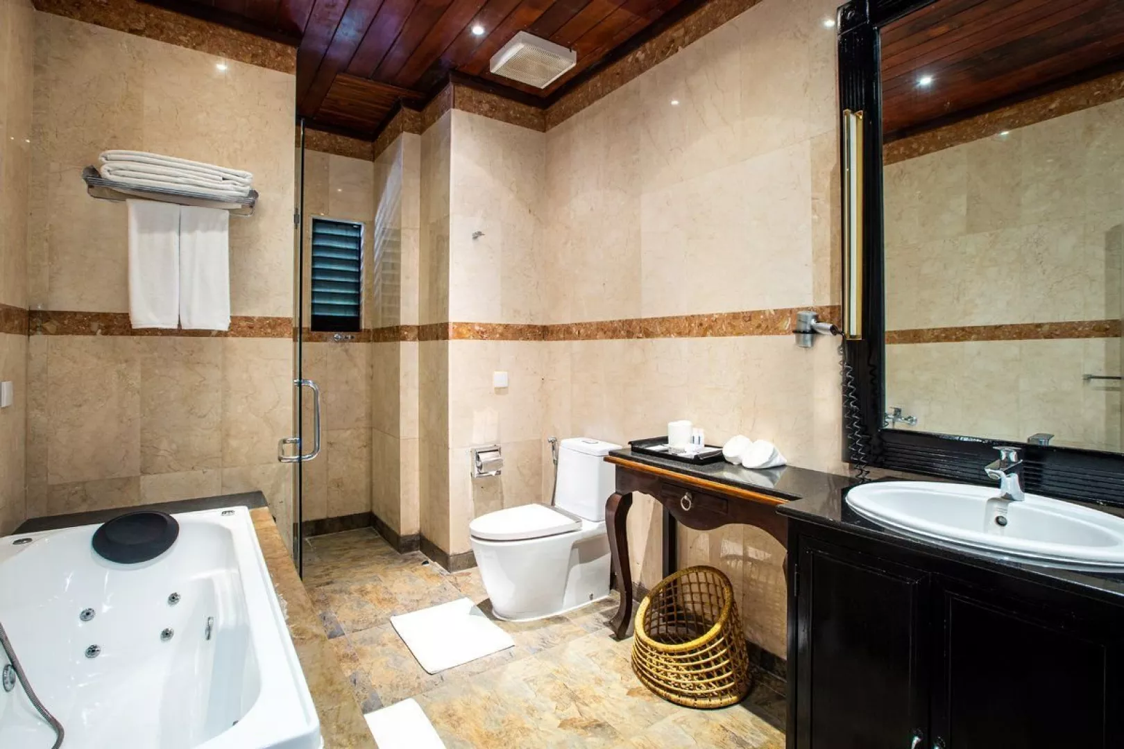 Izba Deluxe je vybavená manželskou posteľou alebo dvoma samostatnými lôžkami, vlastným sociálnym zariadením, fénom, klimatizáciou, TV, WiFi pripojením, kávovarom alebo čajníkom a trezorom.