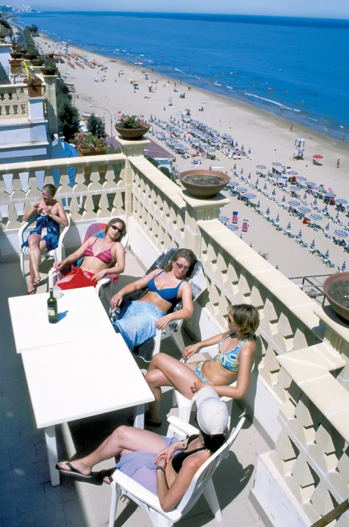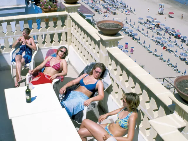 plážový servis (1 slnečník a 2 ležadlá / izba v cene, od 2. radu)