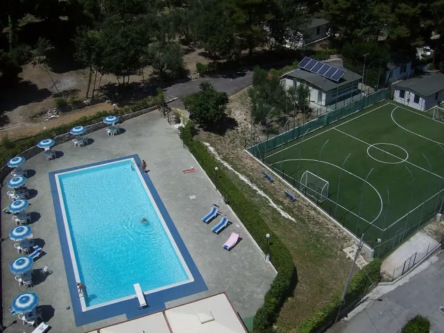 bazén so slnečníkmi a ležadlami* (povinná kúpacia čapica), multifunkčné ihrisko, stolný tenis * služby za príplatok