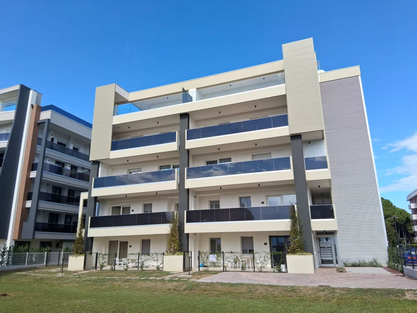 nový apartmánový dom priamo pri pláži – dokonalé spojenie dizajnu, funkčnosti a pohodlia – budova postavená na pôvodnej stavbe, prízemie a prvé poschodie kompletne zrekonštruované a novo vybavené