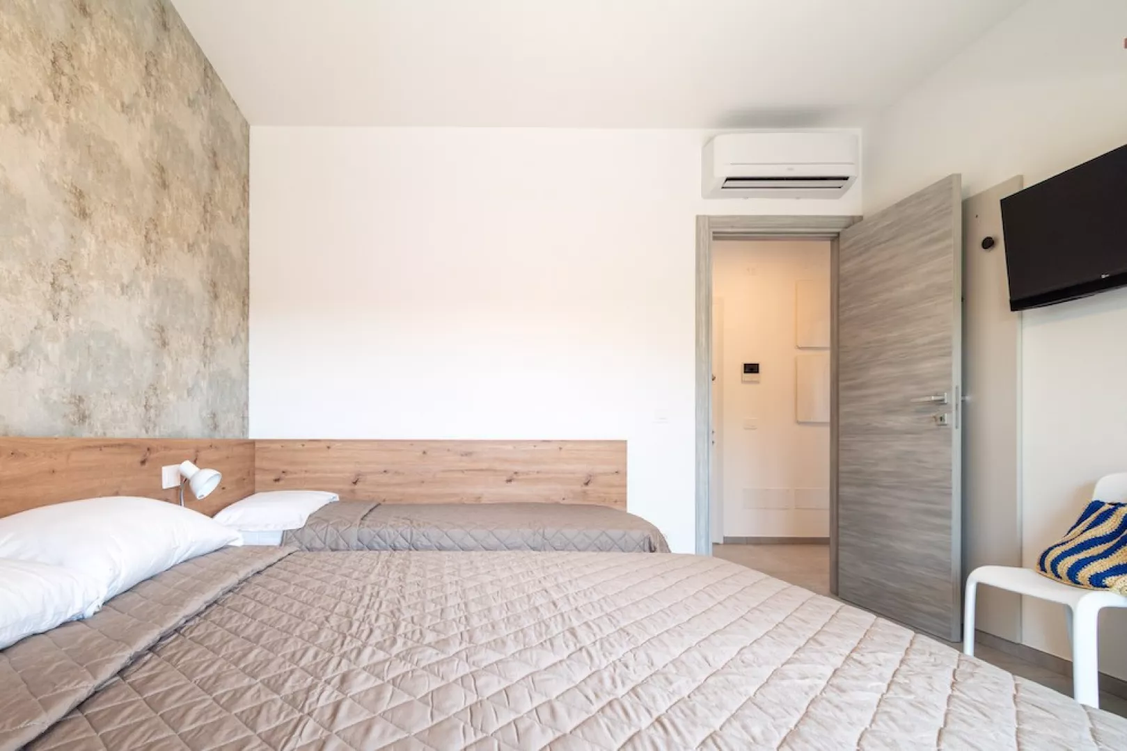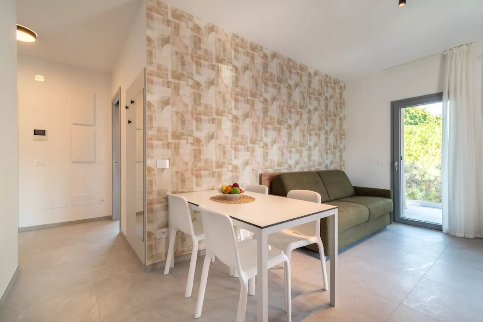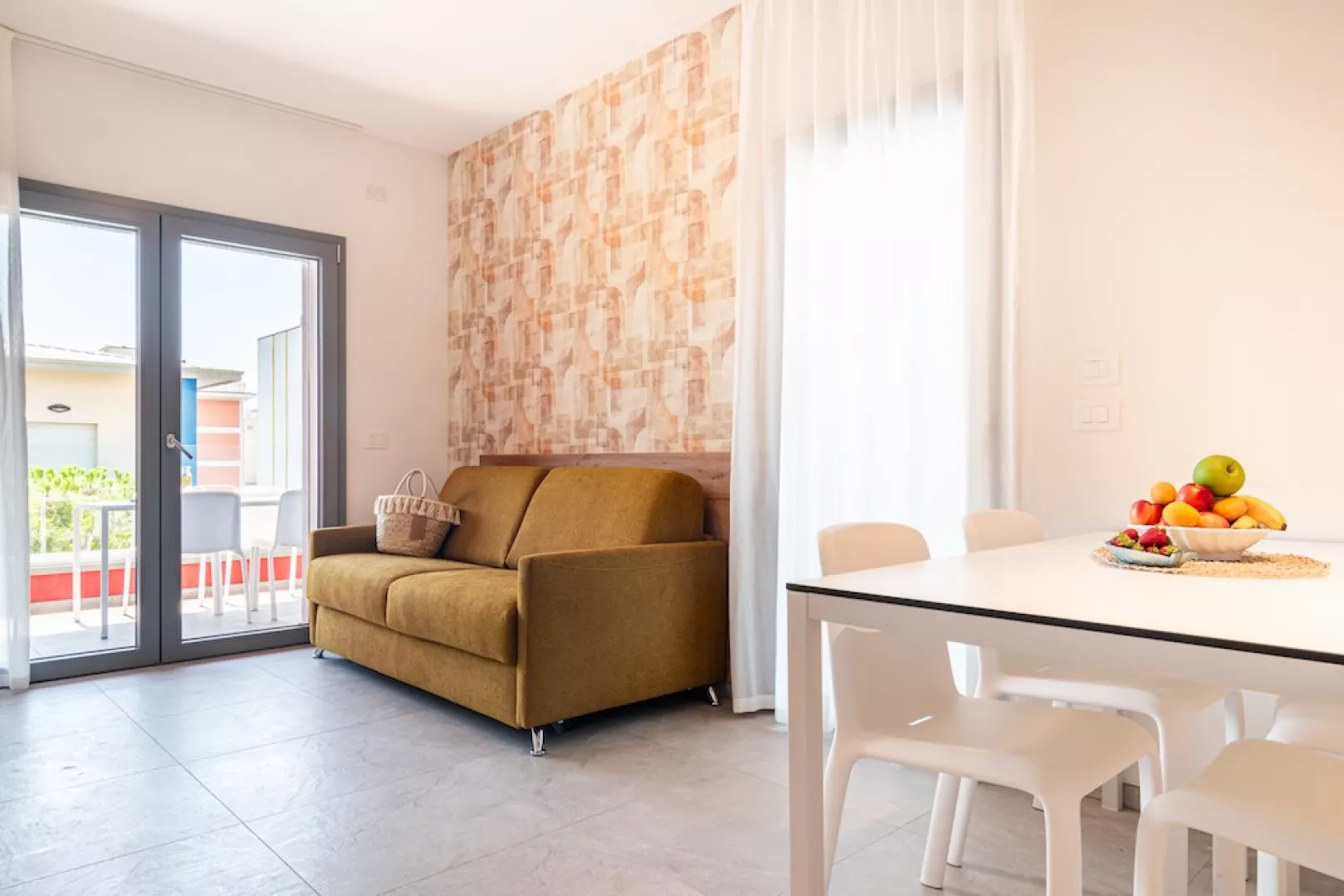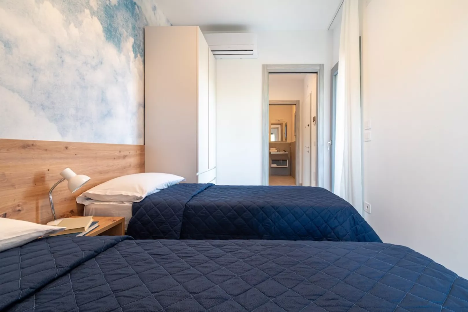 Typy apartmánov: Štúdio typ A4 pre 2-4 osoby Štúdiový apartmán pozostáva zo spálňovej časti s dvojlôžkom, v obývacej izbe s kuchynským kútom sa rozkladacia pohovka pre dve osoby, kúpelňa. Štúdio disponuje zariadeným balkónom., Apartmán typ C5+2 pre 4-7 osôb Apartmán pozostáva zo spálne s dvojlôžkovou postelou a jedným samostatným lôžkom, malá spálňa s dvomi samostatnými lôžkami. V obývacej časti s kuchnským kútom sa nachádza rozkladacia pohovka pre dve osoby, kúpelňa so sprchovým kútom. Apartmán disponuje zariadenou terasou., Vybavenie apartmánov: TV/SAT, klimatizácia, WiFi, kuchynský kút s chladničkou a mikrovlnnou rúrou, vlastné sociálne zariadenie, balkón,