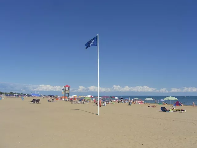 dlhá a široká piesočnatá pláž s jemným pieskom, plážový servis za poplatok,