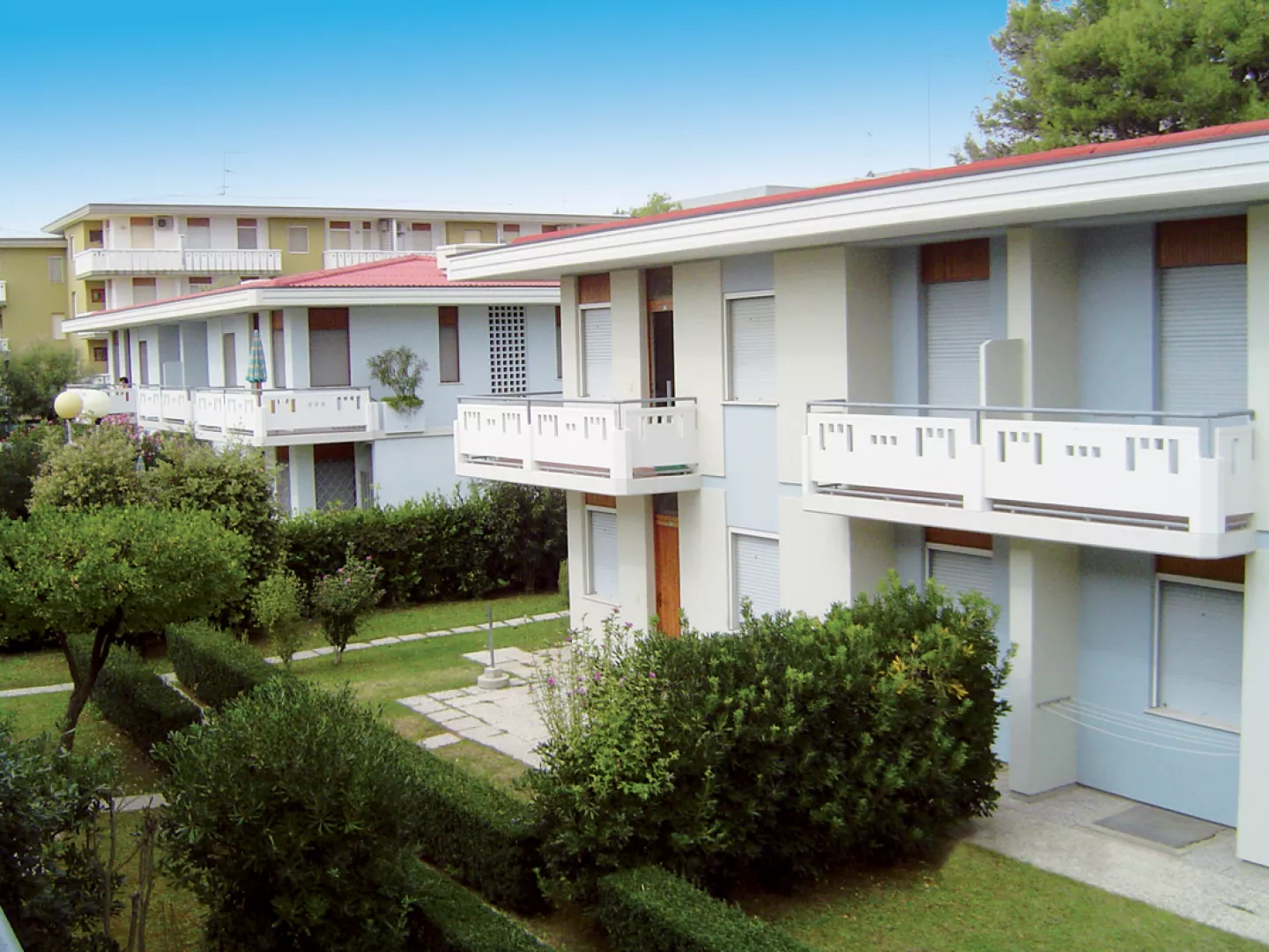 dva štvorposchodové apartmánové domy (Est a Ovest) a dvojpodlažné vily v prvej línii od pláže