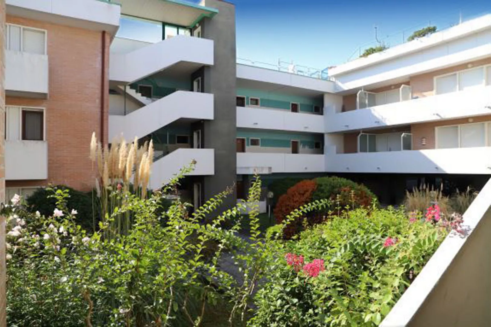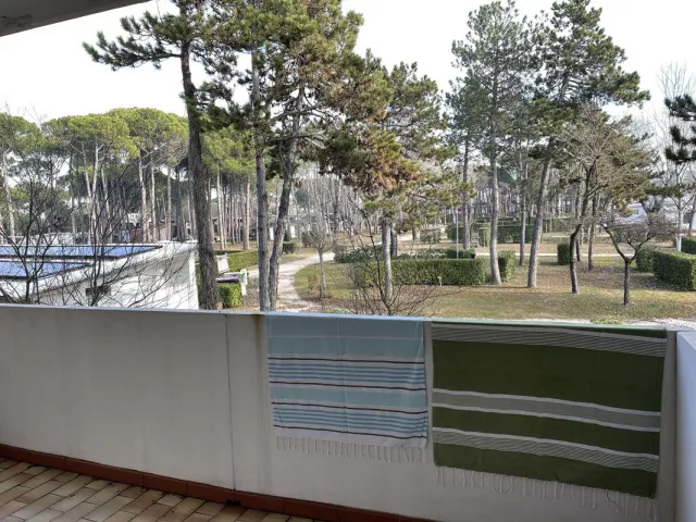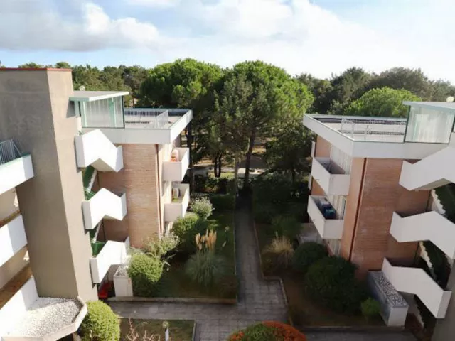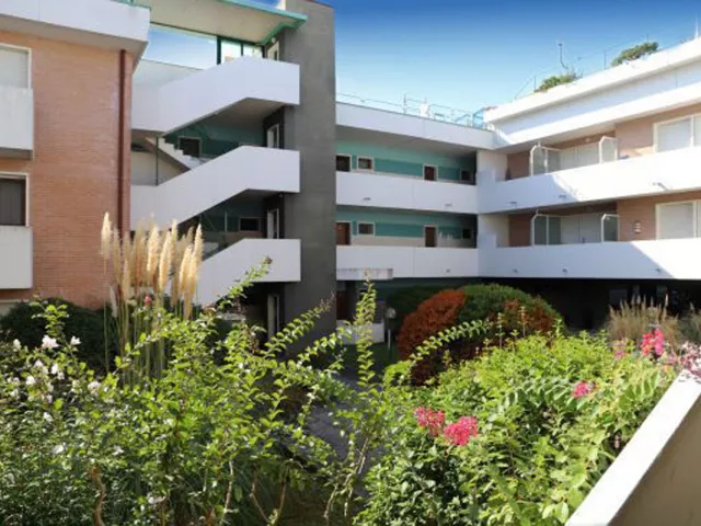 Obľúbený apartmánový dom s bazénom a upravenou záhradou sa nachádza v zelenej časti strediska Bibione, iba 100 m od pláže v oblasti Pineda.