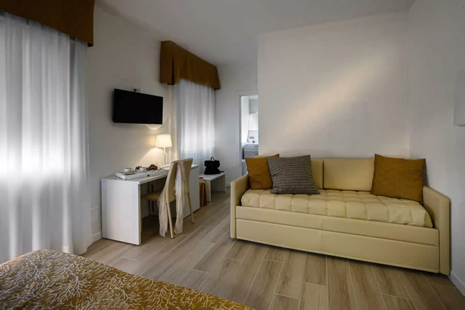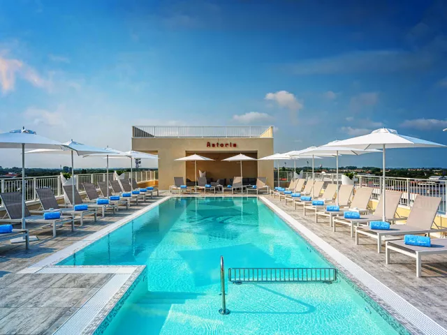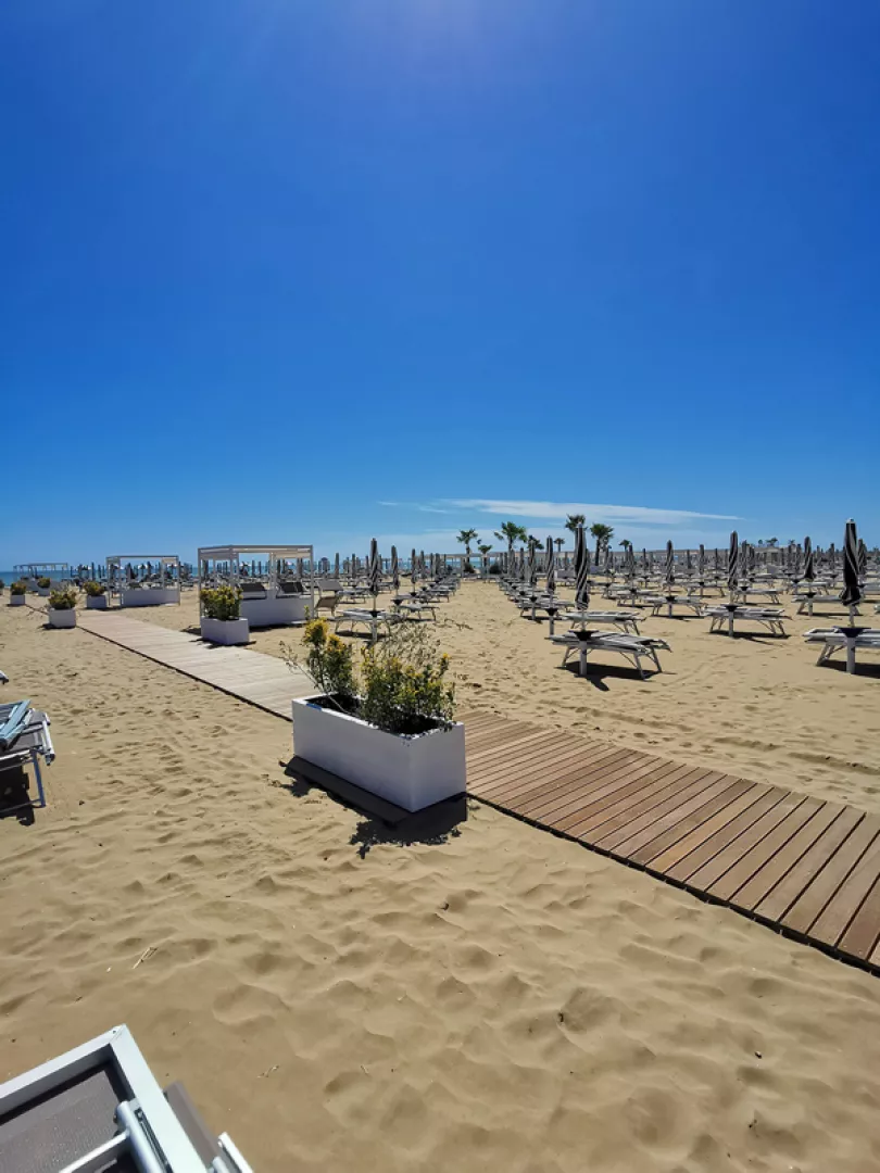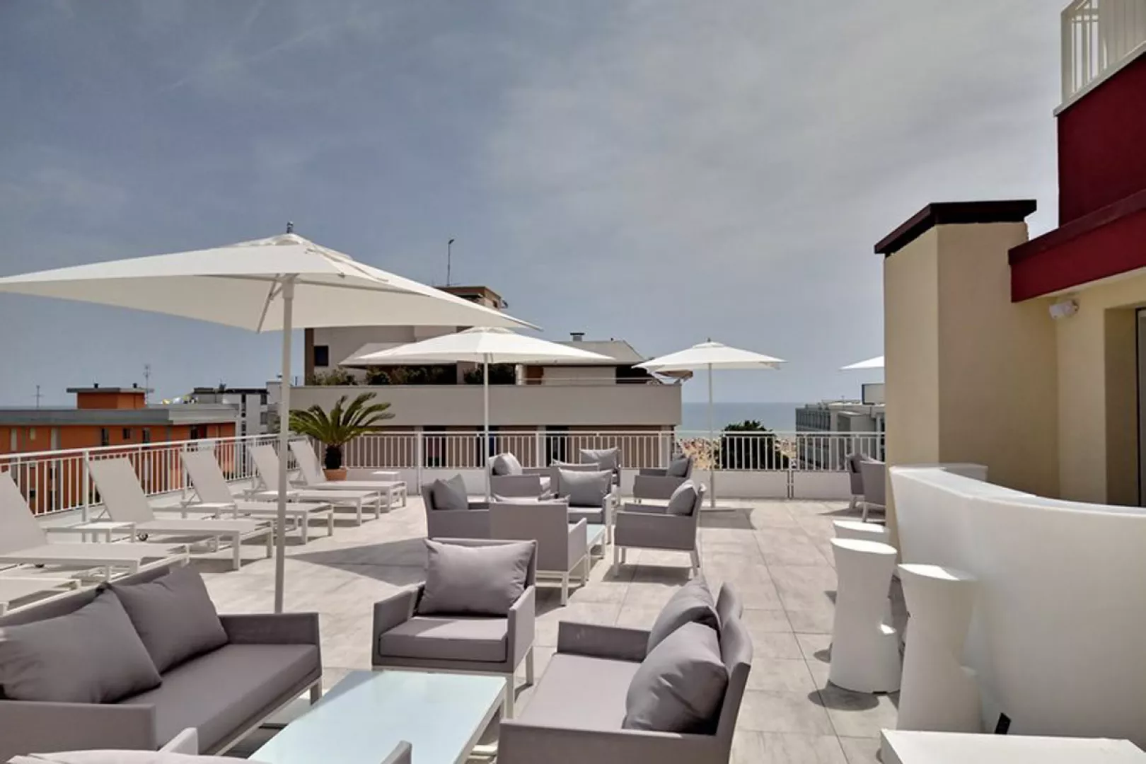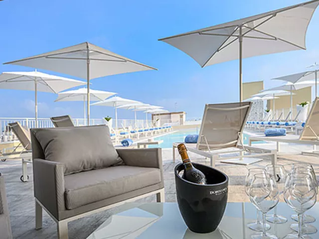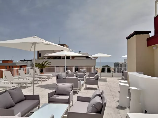 panoramatický strešný bazén s ležadlami a slnečníkmi, slnečná terasa, na privátnej pláži aj plážový servis (2 ležadlá + slnečník, prípadne 2 ležadlá + plážový altán / izba v cene); požičovňa bicyklov, osušiek pri bazéne* * služby za príplatok