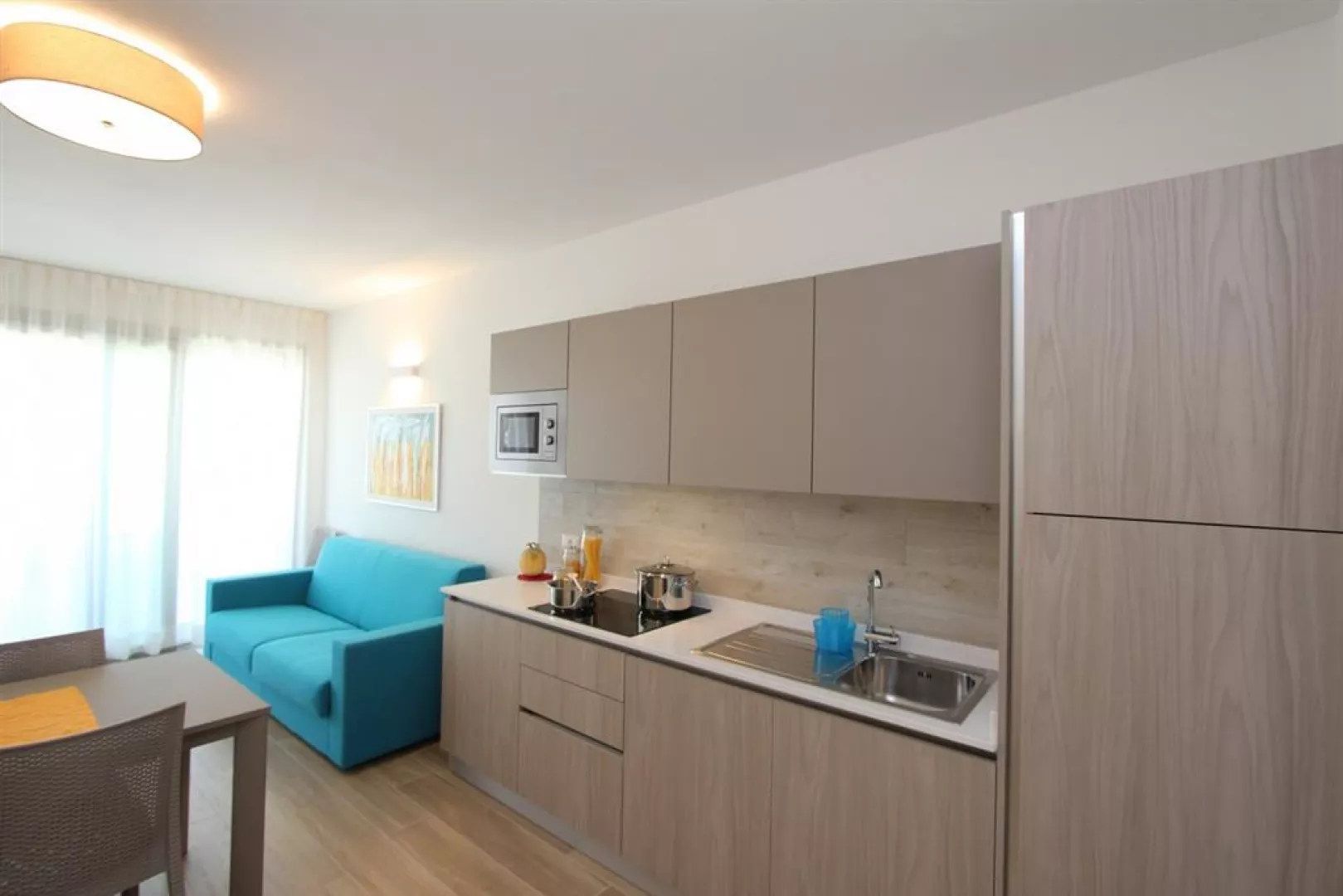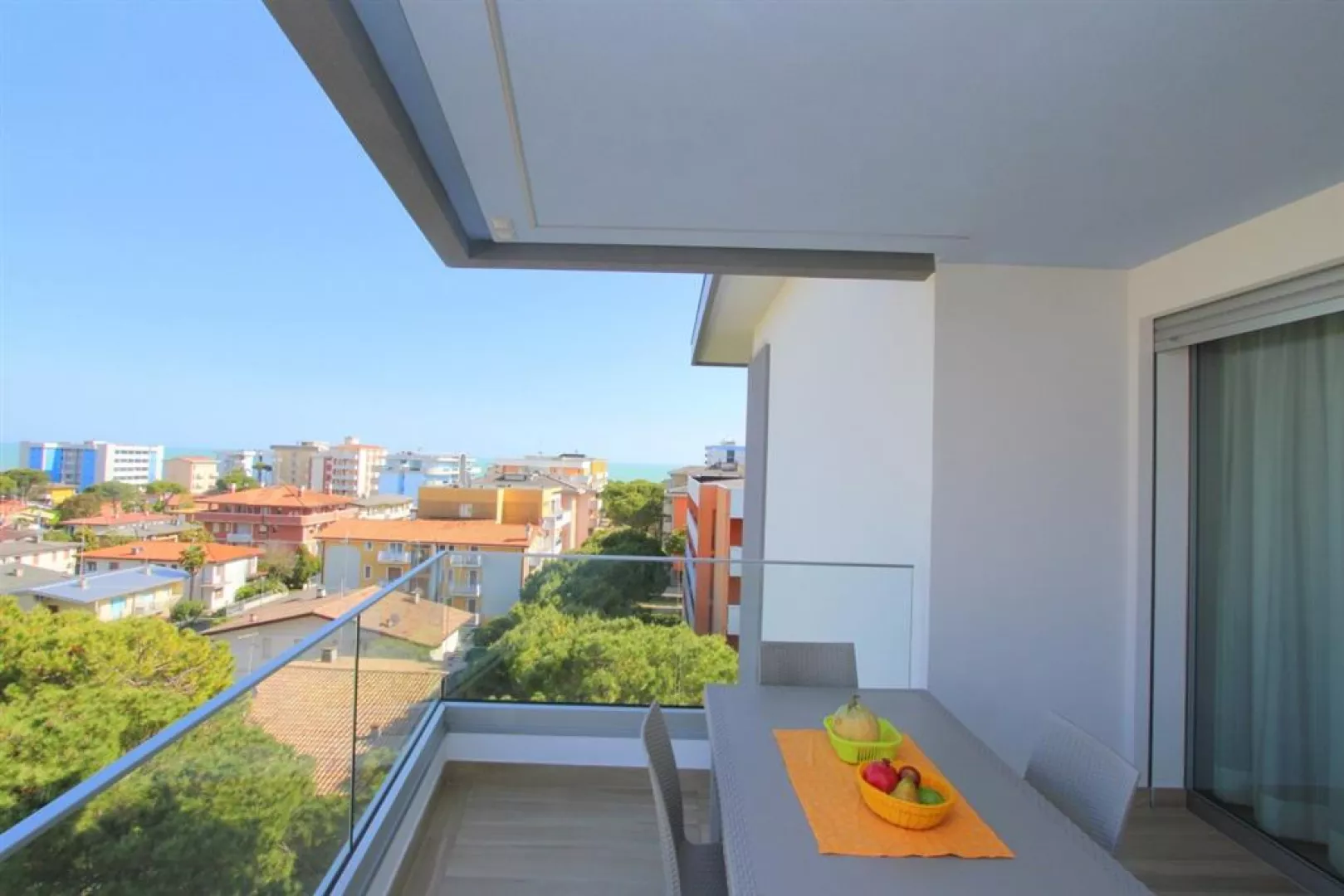 Luxusný novopostavený apartmánový dom s výťahom a klimatizáciou sa nachádza neďaleko pláže. Poskytuje moderné zariadenie, strešný bazén a terasu s unikátnym výhľadom na celé stredisko a more, priamo v centre Bibione Spiaggia.