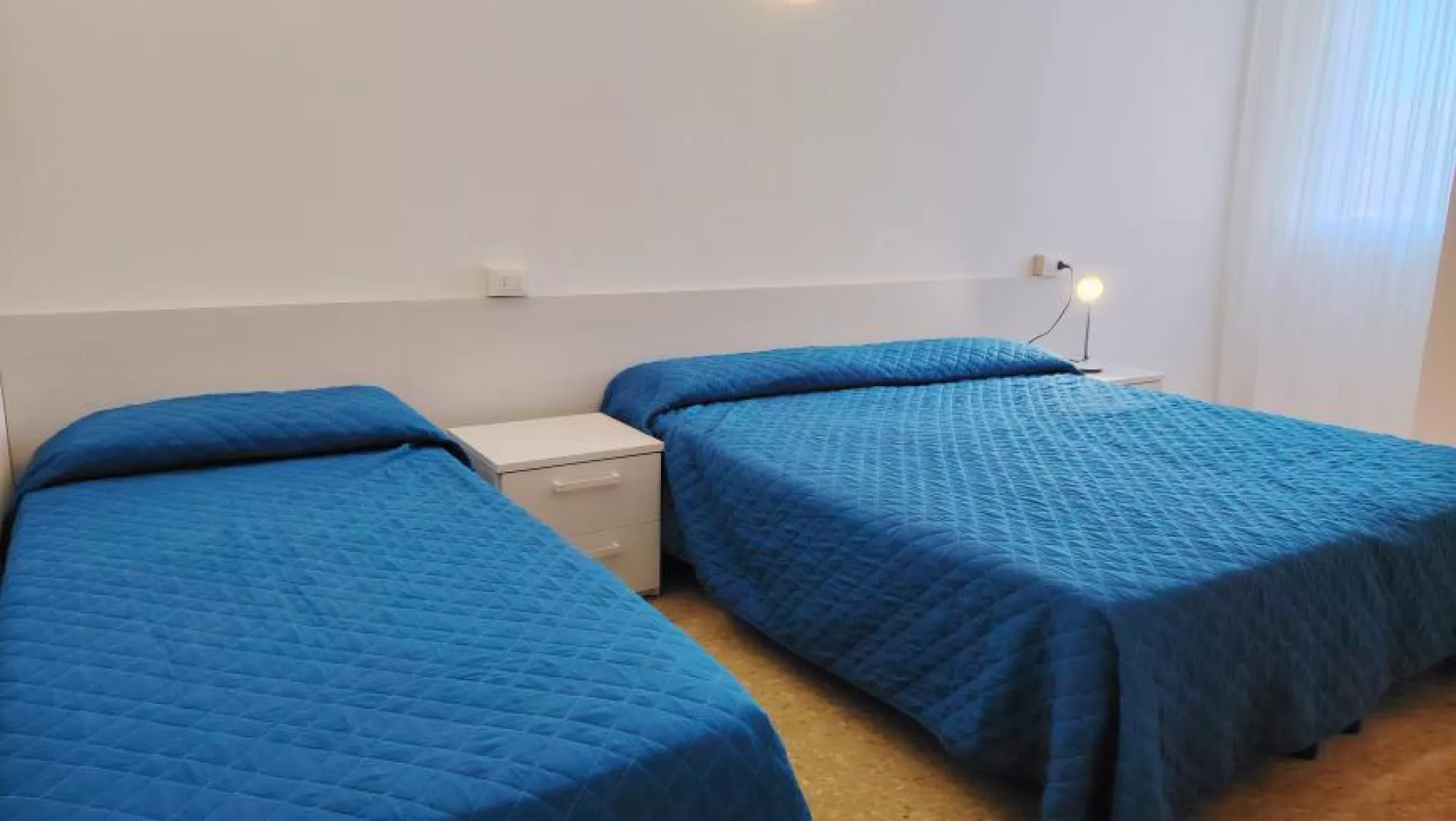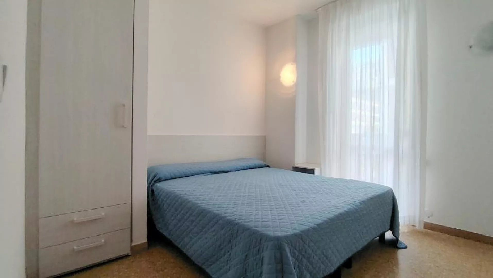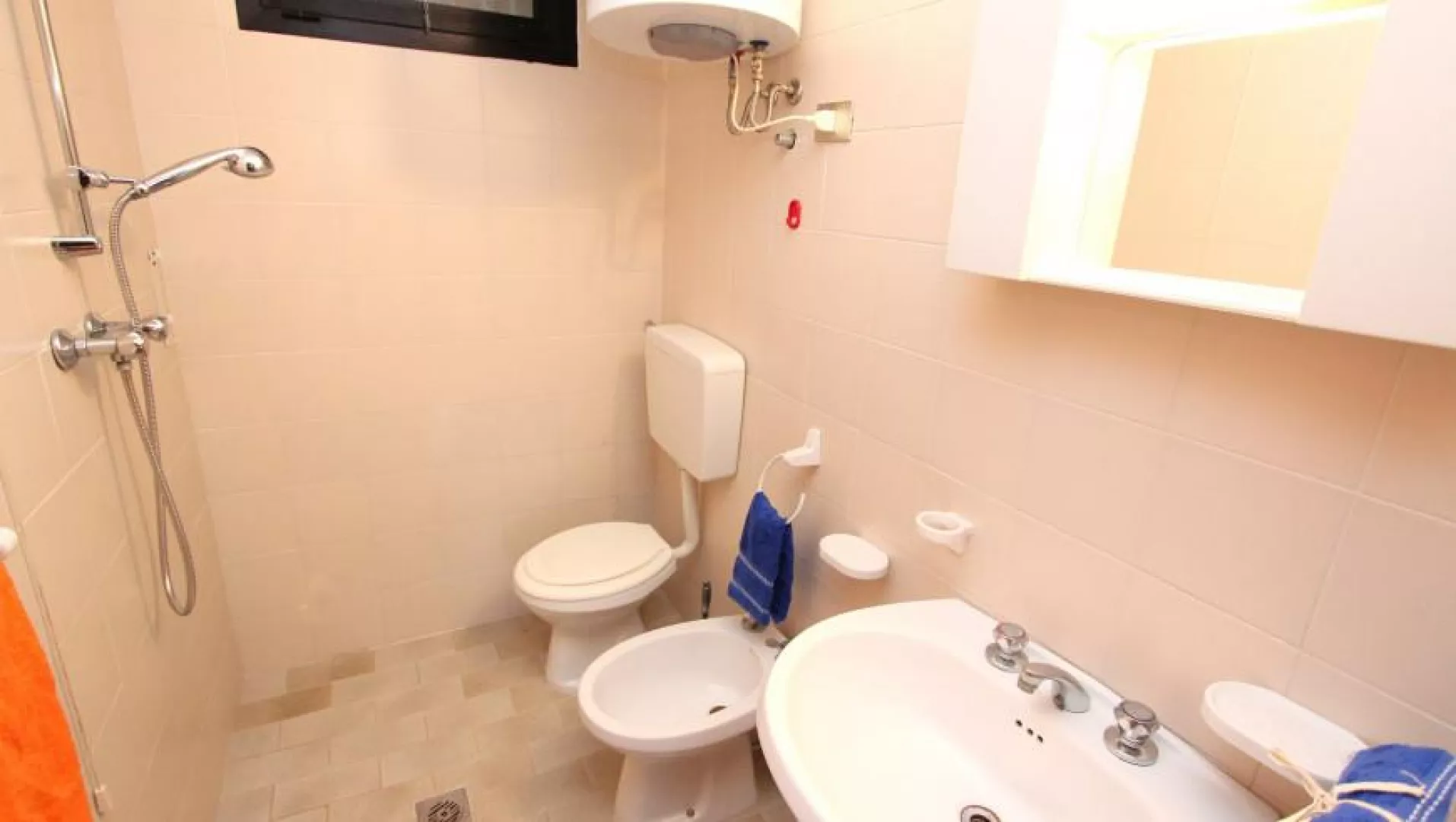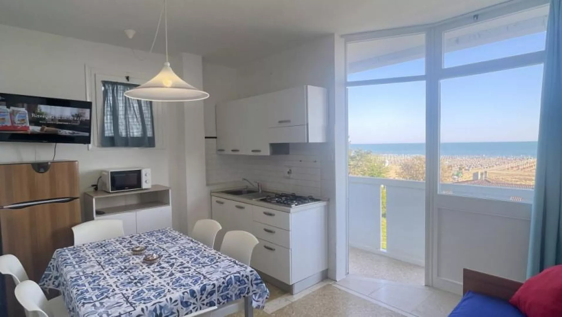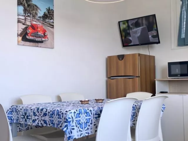 Klimatizovaný apartmánový dom, ktorý bol čiastočne zrekonštruovaný v roku 2024, ponúka fantastickú polohu priamo pri plážovej promenáde s výhľadom na more. WiFi je zahrnuté v cene.
