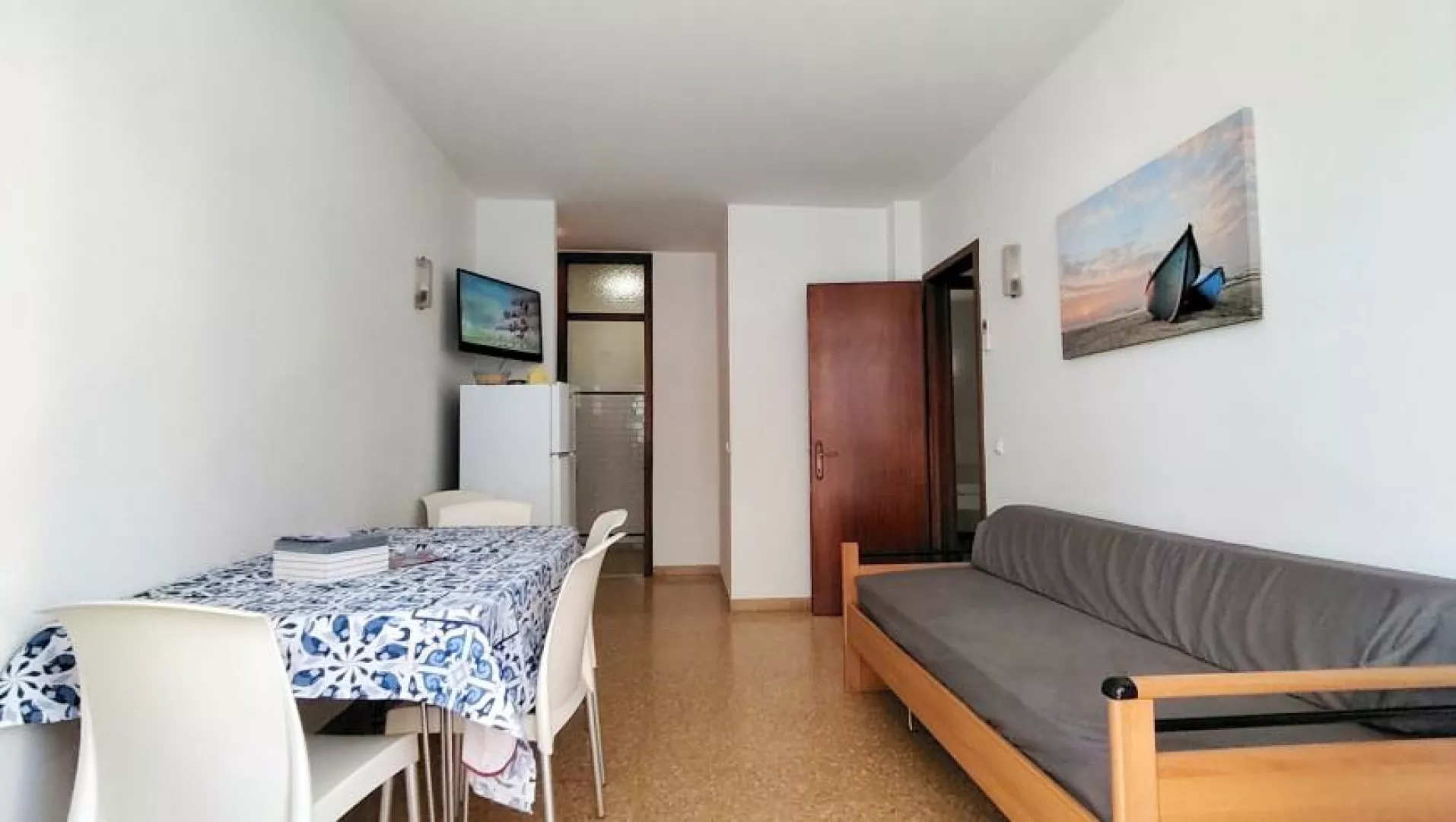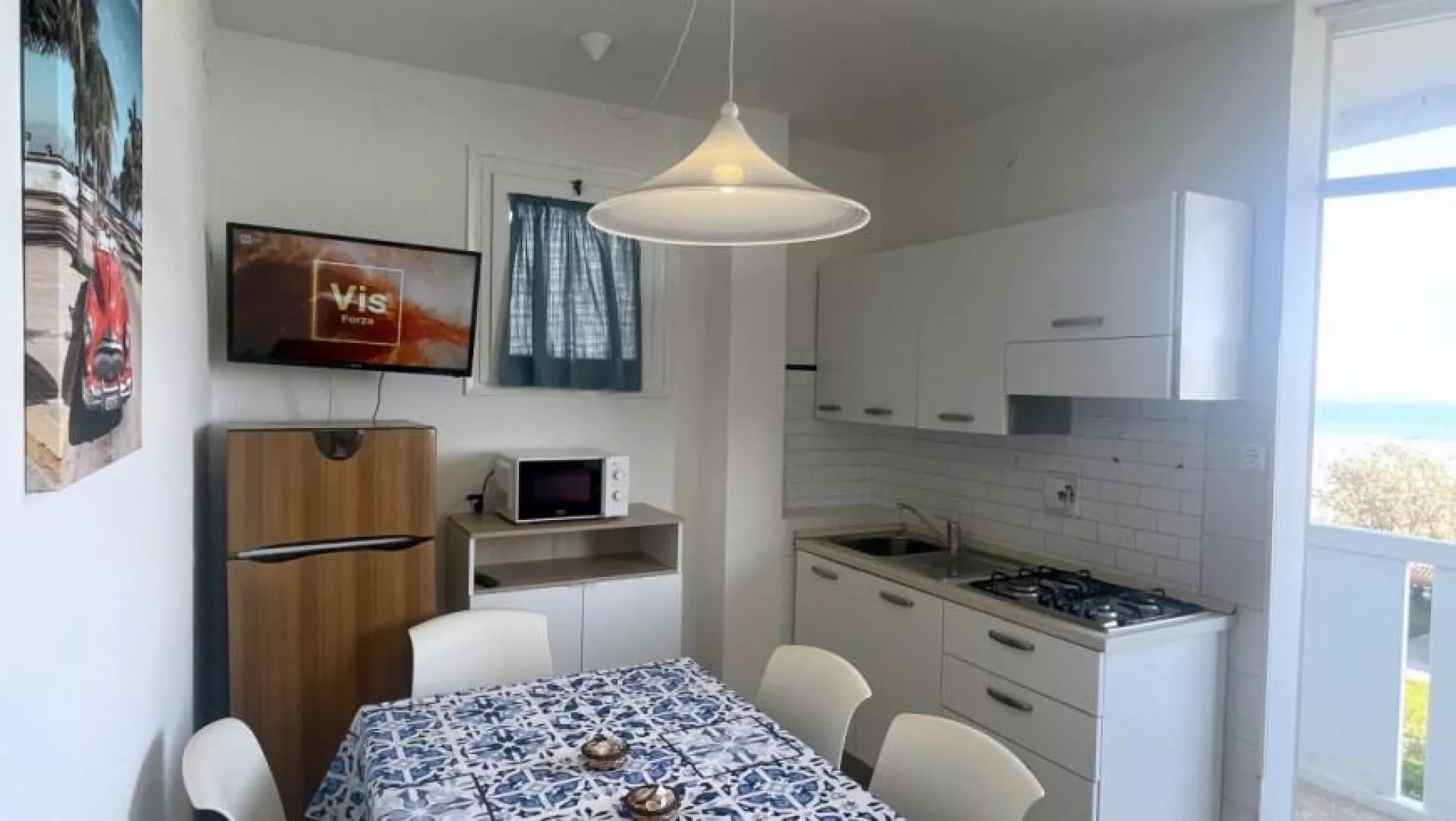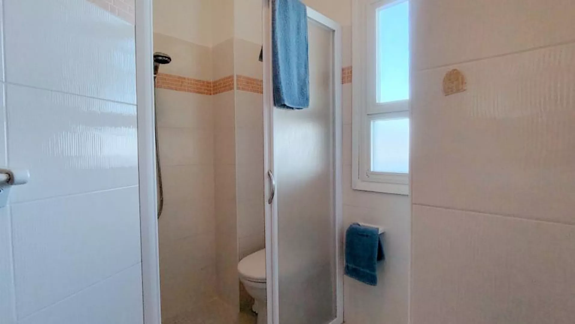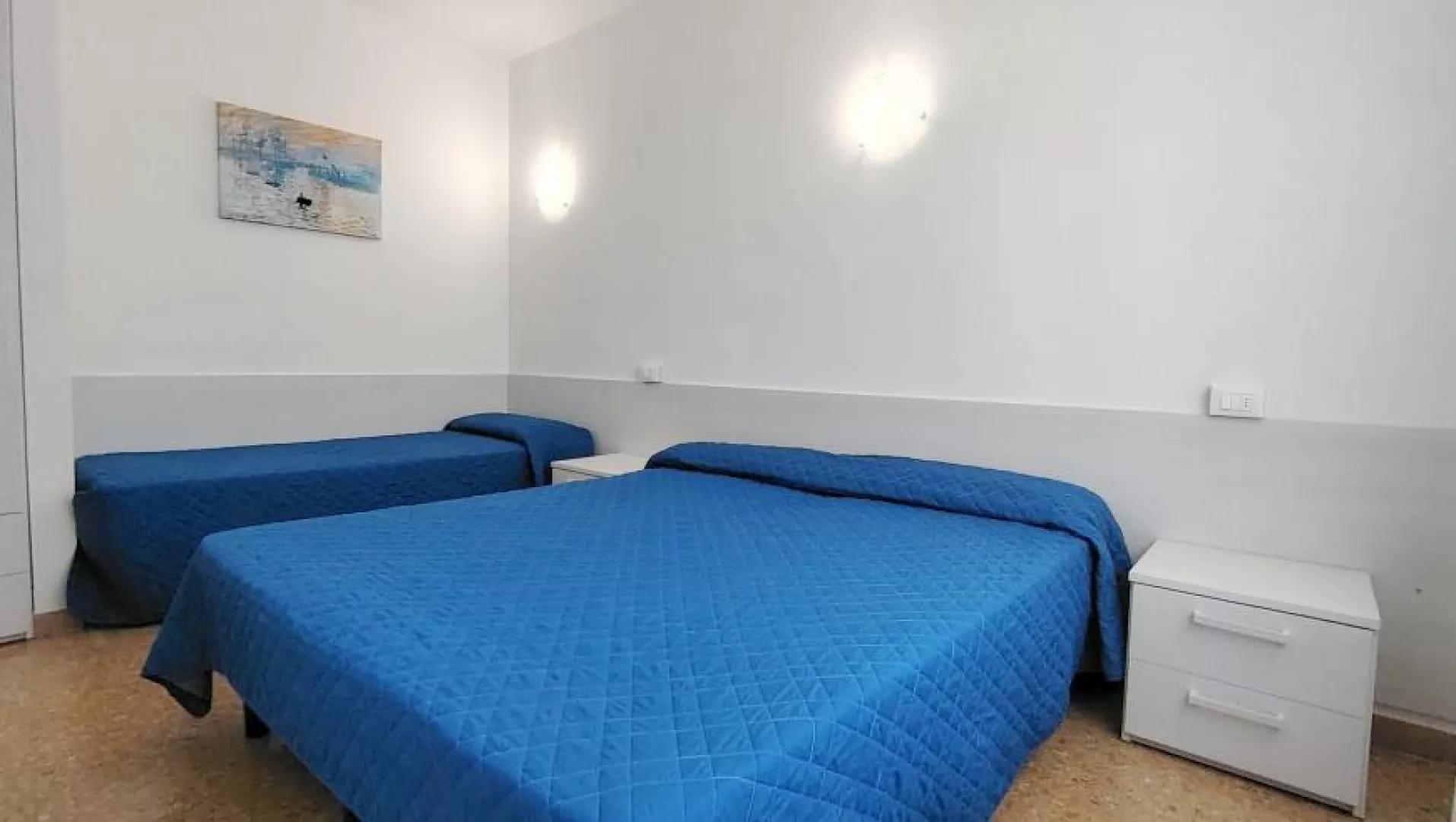 Klimatizovaný apartmánový dom, ktorý bol čiastočne zrekonštruovaný v roku 2024, ponúka fantastickú polohu priamo pri plážovej promenáde s výhľadom na more. WiFi je zahrnuté v cene.
