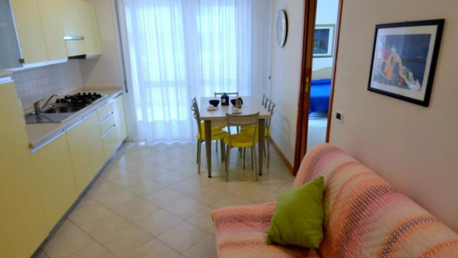 Jedná sa o komfortný apartmánový dom s výťahom, ktorý sa nachádza v blízkosti pláže, približne 80 m od mora, priamo v centre Bibione Spiaggia na Via Andromeda 164. V okolí sa nachádzajú obchody, reštaurácie, kaviarne a bary.