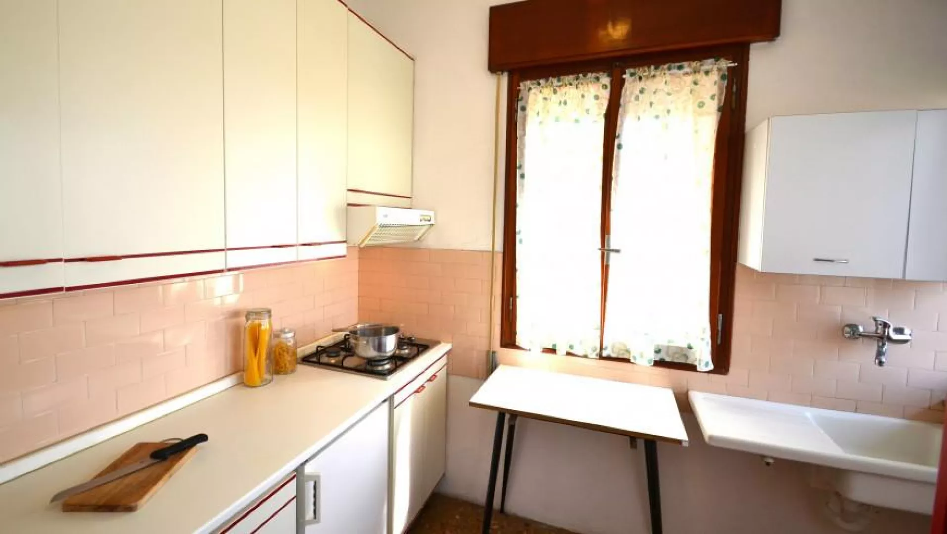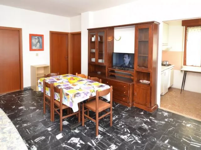 Starší klimatizovaný niekoľkoposchodový dom bez výťahu sa nachádza priamo na piesočnatej pláži a poskytuje priestranné apartmány s kapacitou až pre 7 osôb, pričom všetky majú balkóny s výhľadom na more.