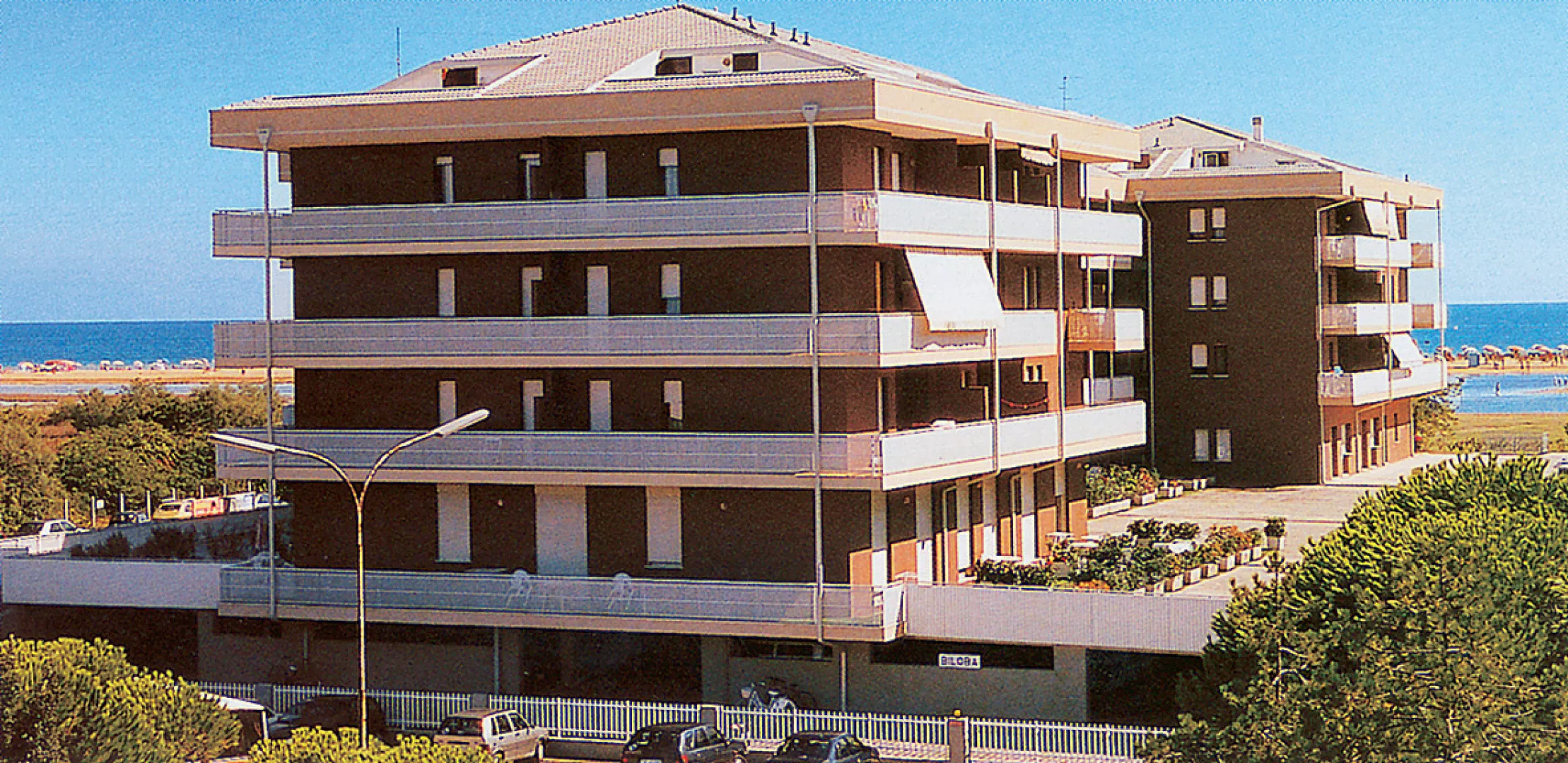 takmer identické a takmer susedné apartmánové domy v prvej línii od pláže