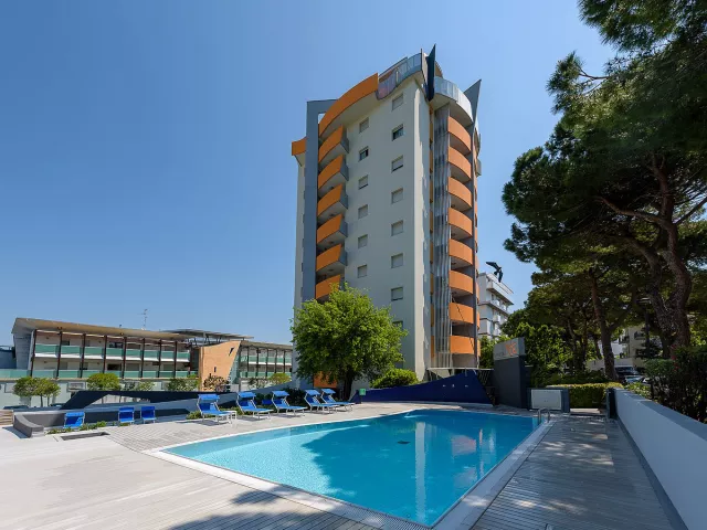 detská postieľka: za poplatok (len na požiadanie v CK; max. 1 nad rámec plnej obsaditeľnosti apartmánu; pre dieťa do dovŕšenia 2 rokov) bazén: v prevádzke približne od polovice mája do polovice septembra plážový servis: pozostáva zo slnečníka, ležadla a plážového kresla; je ponúkaný na prevažnej väčšine pláží v Bibione pobytová taxa / povinná úhrada na mieste: max. 10 nocí; neplatia ju osoby mladšie ako 4 roky, osoby so zdravotným postihnutím a ich sprievod bezbariérový prístup: nájazdová rampa do bazéna so sklonom o 7 % menším (v porovnaní s normou), aby sa každá osoba používajúca invalidný vozík mohla pohybovať dnu a von úplne samostatne; rovná podlaha; výťah s hlasovým signálom; vyššie ležadlá (výška sedacej plochy 55 cm) pre jednoduchý presun z invalidného vozíka na lôžko