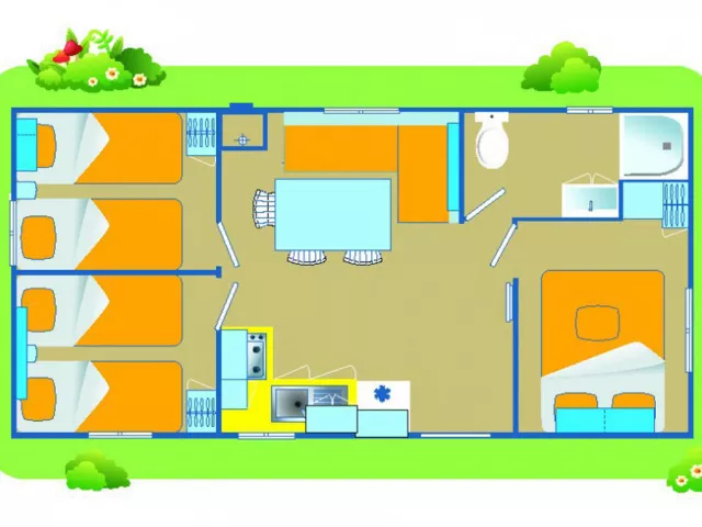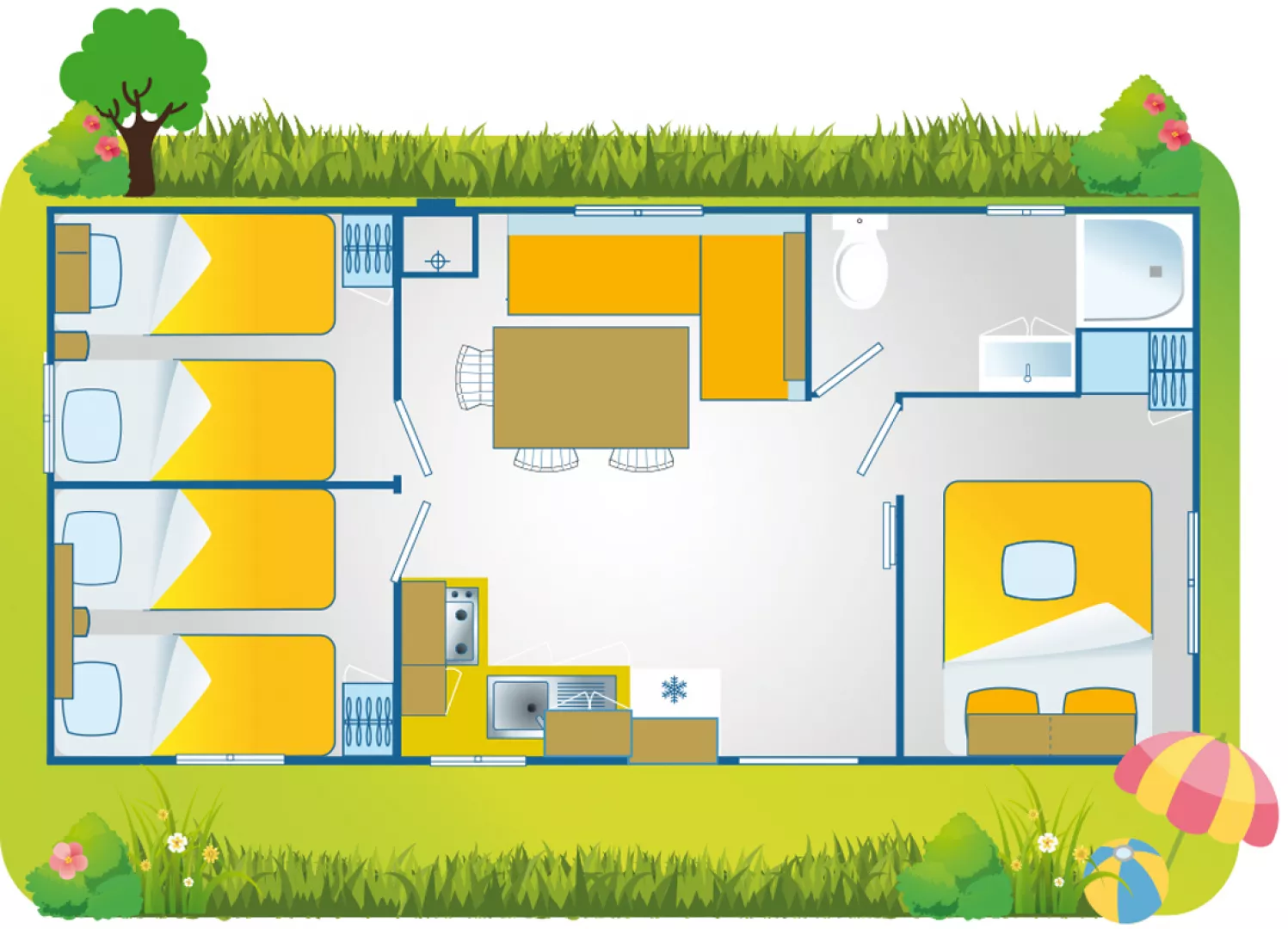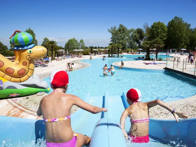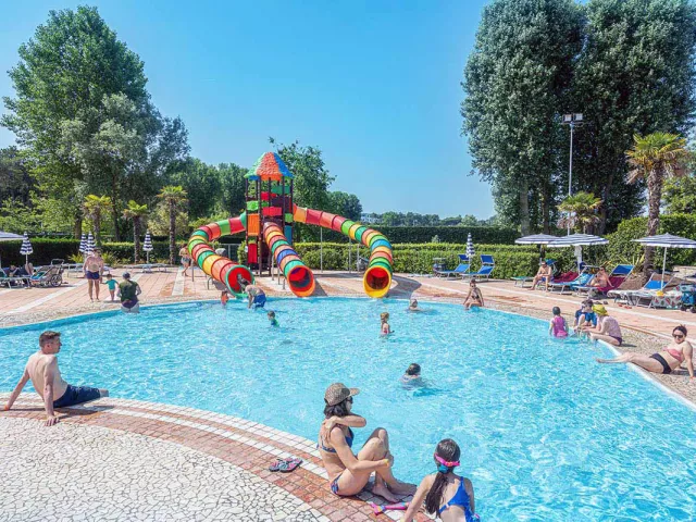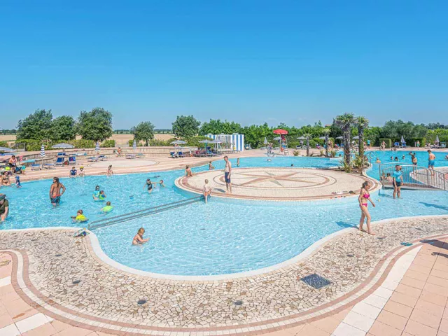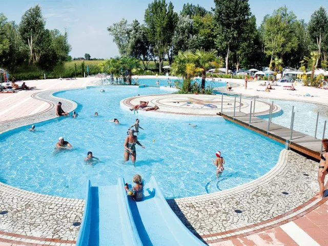 vonkajší bazén s detským bazénom a vodnou šmýkľavkou, vírivka, lehátka a slnečníky (na vyžiadanie)*, stolný tenis, požičovňa bicyklov*, kurty na plážový volejbal a volejbal, futbalové ihrisko, petanque, detský kútik, detské ihrisko i na pláži * služby za príplatok