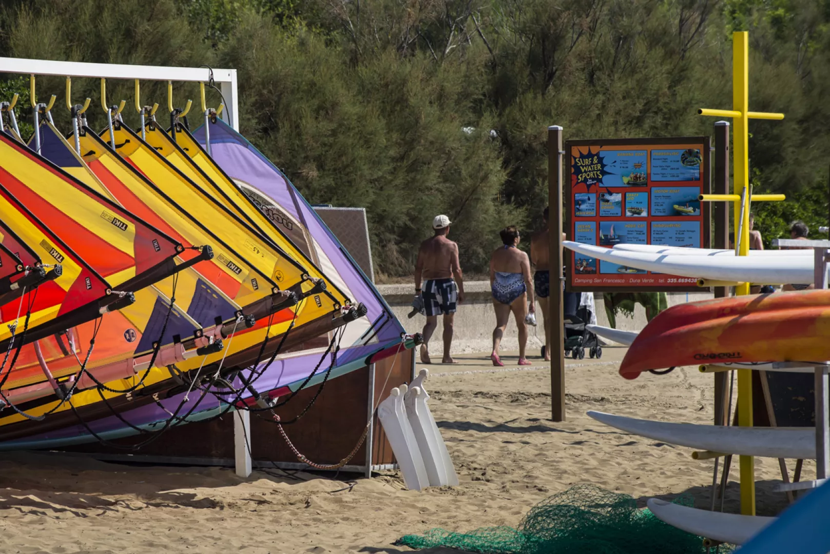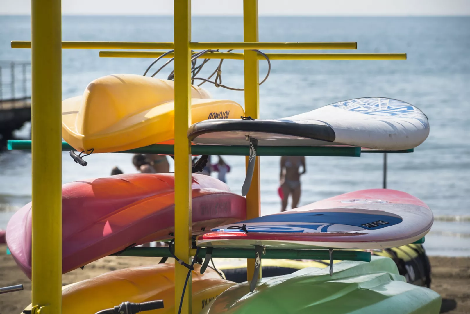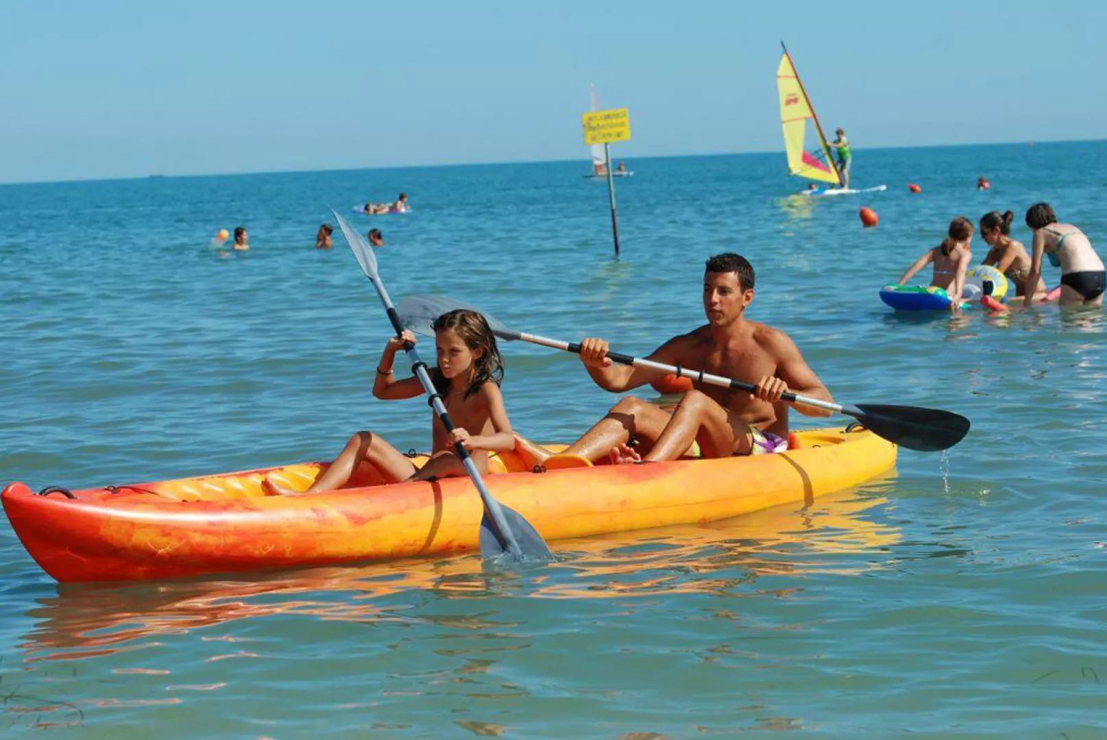 4 vonkajšie bazény so šmykľavkami a vírivkou (v nízkej sezóne 1 vyhrievaný), vodný park Spray Park s fontánami a vodnými hrami, fitness centrum, ležadlá a slnečníky (na požiadanie)*, tenisové kurty, kurt na padel*, basketbalové, futbalové a volejbalové ihrisko, petanque, minigolf, stolný tenis, lekcie jogy*, aerobiku*, pilates*, požičovňa bicyklov*, vodných bicyklov*, člnov*, kajakov* aj windsurfov*, od júna do začiatku septembra plavecká škola* pre deti od 3 do 12 rokov, detský kútik, detské ihrisko aj na pláži * služby za príplatok