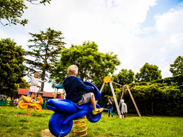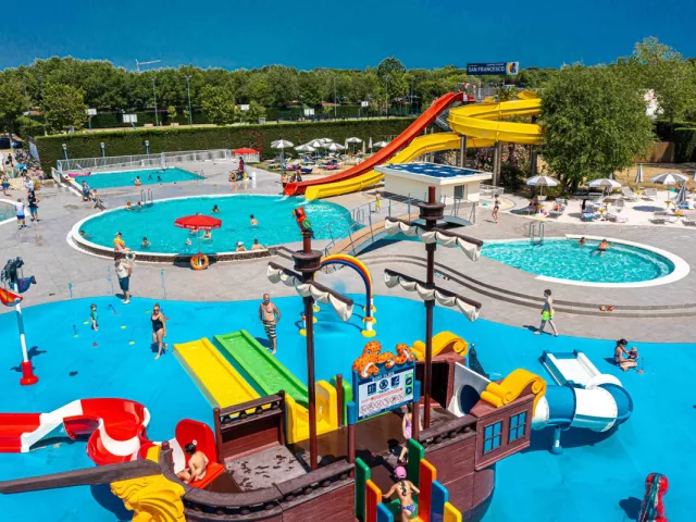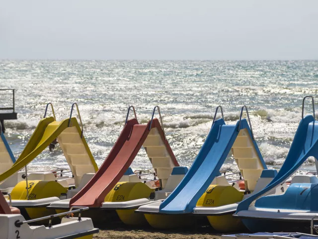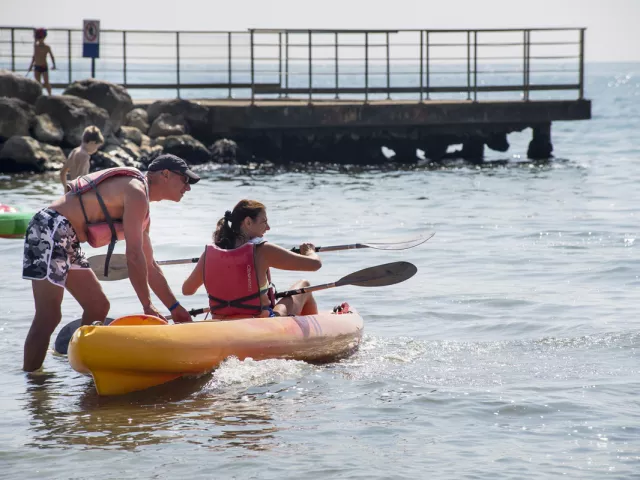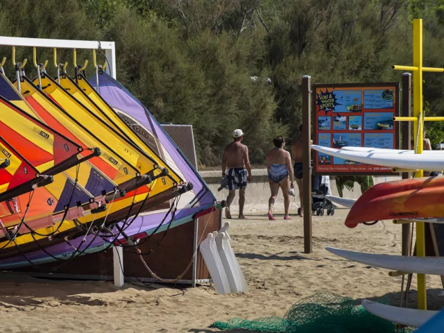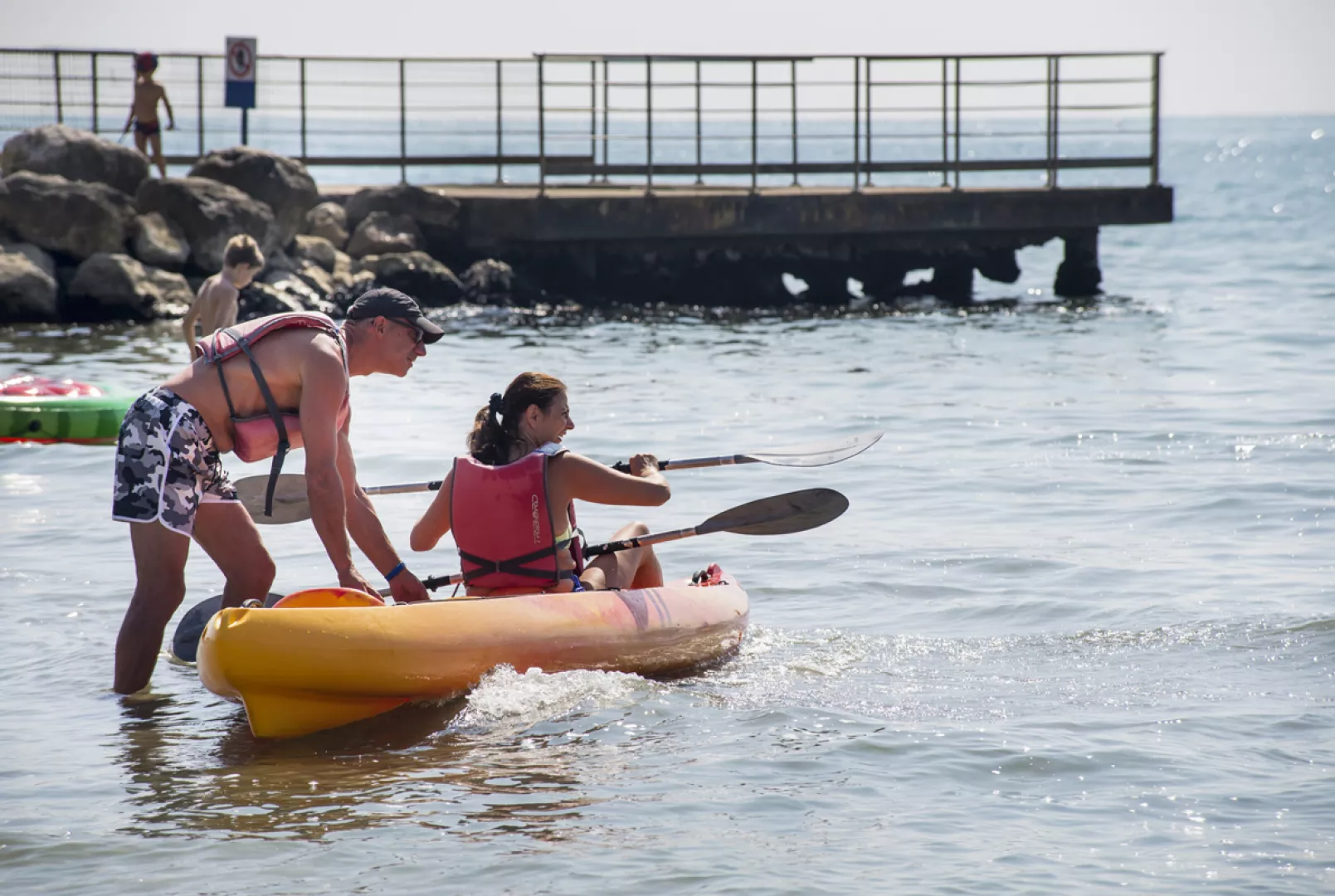4 vonkajšie bazény so šmykľavkami a vírivkou (v nízkej sezóne 1 vyhrievaný), vodný park Spray Park s fontánami a vodnými hrami, fitness centrum, ležadlá a slnečníky (na požiadanie)*, tenisové kurty, kurt na padel*, basketbalové, futbalové a volejbalové ihrisko, petanque, minigolf, stolný tenis, lekcie jogy*, aerobiku*, pilates*, požičovňa bicyklov*, vodných bicyklov*, člnov*, kajakov* aj windsurfov*, od júna do začiatku septembra plavecká škola* pre deti od 3 do 12 rokov, detský kútik, detské ihrisko aj na pláži * služby za príplatok