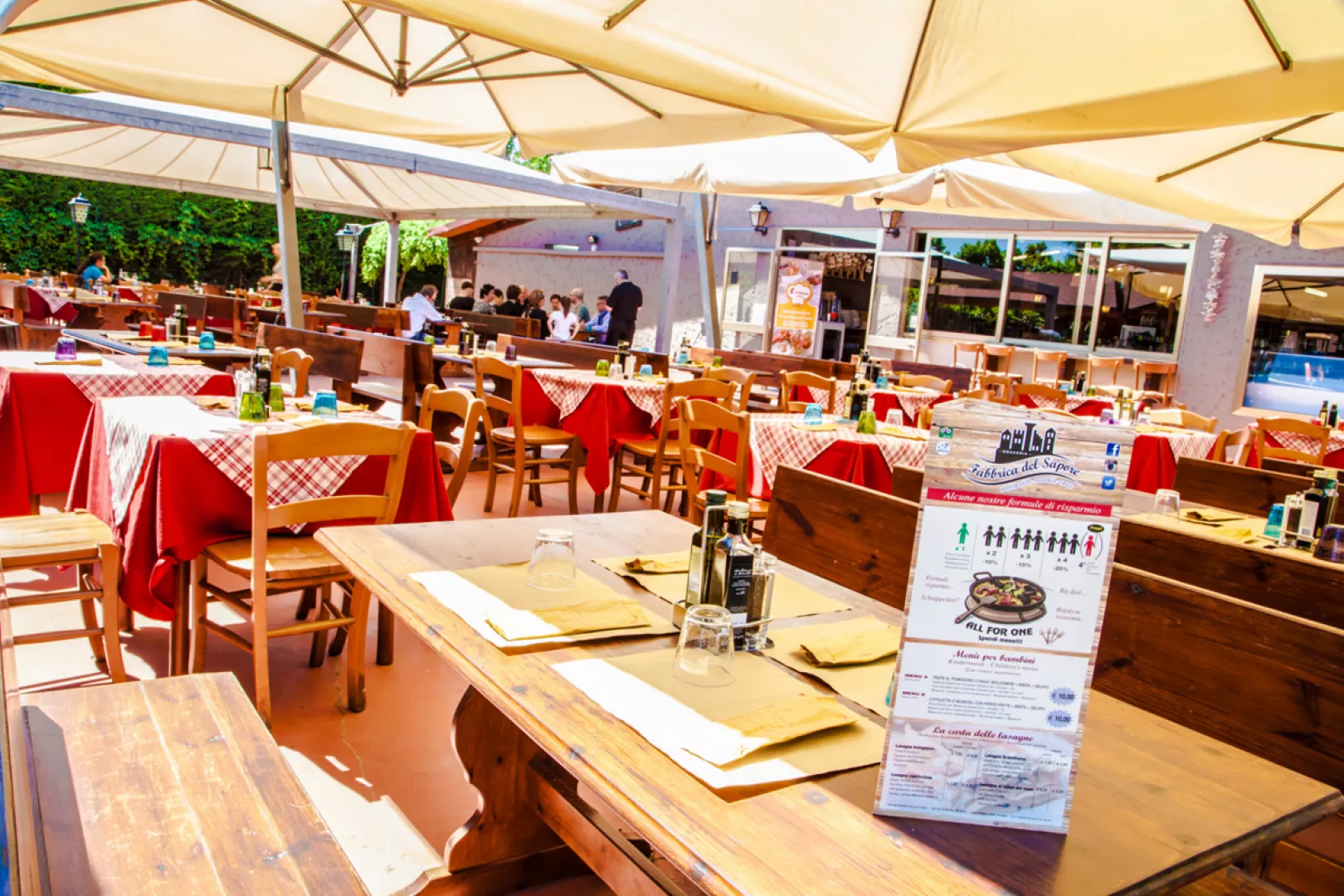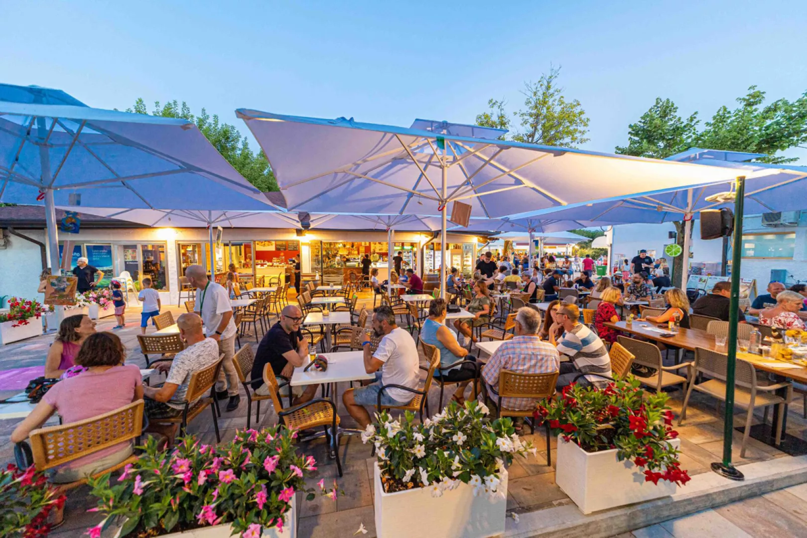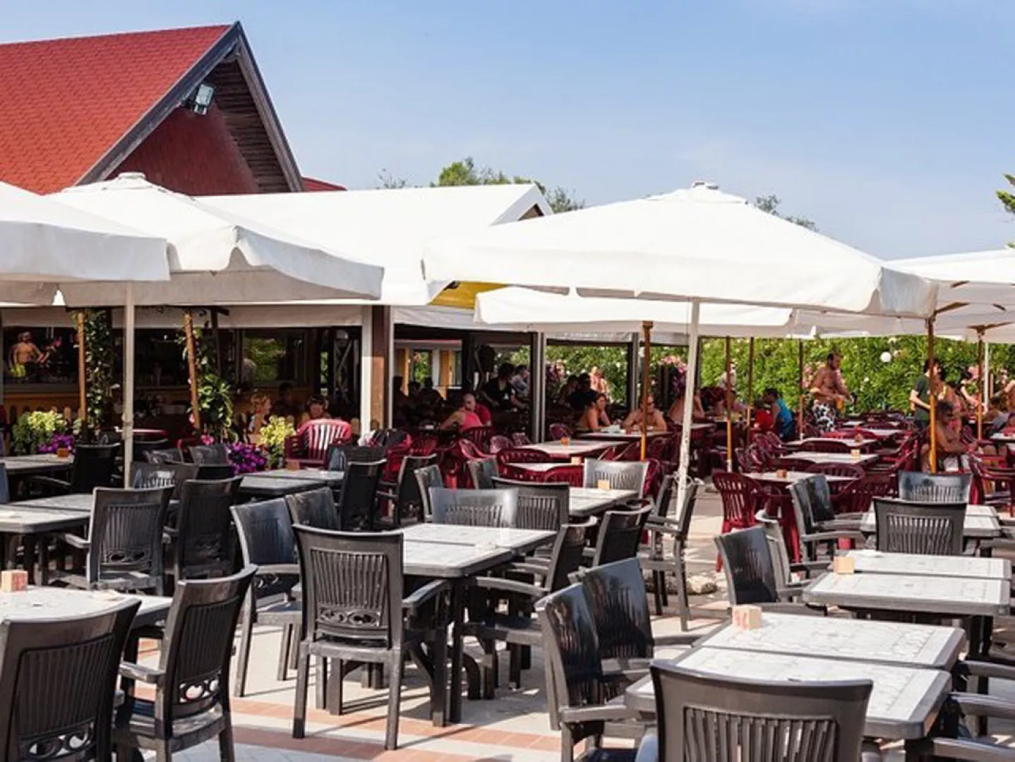 recepcia, bar a reštaurácia, 2 pizzerie, snack bar, jogurtéria a zmrzlináreň, detský kútik, detský klub a animačné programy (cca od konca mája do začiatku septembra), vyhradené parkovisko, práčovňa*, umývačka áut*, minimarket, obchod s ovocím, zeleninou, suvenírmi, tabákom, divadlo, herne, diskotéka, lekárska pohotovosť (v hlavnej sezóne), kaderníctvo*, bankomat, wi-fi pripojenie na internet*, miestny motorový vláčik * služby za príplatok