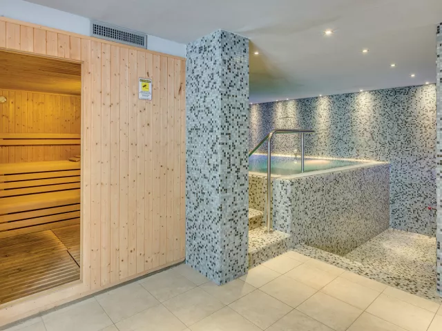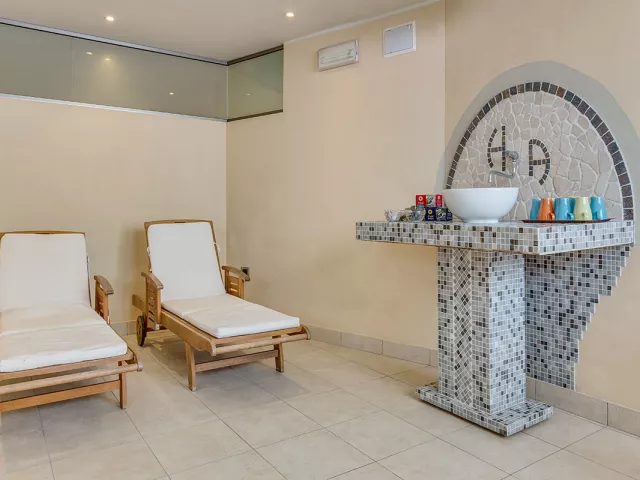 vonkajší bazén, krytý vyhrievaný bazén (len pre dospelých), detský bazénik, slnečná terasa s ležadlami a slnečníkmi, vírivka, wellness centrum (masáže*, turecké kúpele, sauna, whirlpool, solárium, Kneippov chodník, ľadopád) – pre osoby staršie ako 16 rokov, súkromná pláž a plážový servis (1 slnečník, 1 ležadlo a 1 plážová stolička / izba) v cene * služby za príplatok