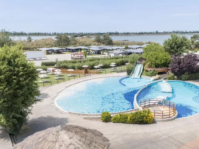 2 bazény, detský bazén so šmýkľavkami, slnečníky a ležadlá (všetko približne od polovice mája do polovice septembra), bazén pre psov*, požičovňa bicyklov*, plážový volejbal, stolný tenis, multifunkčné ihrisko, tenisový kurt*, lanový park*, preliezací hrad* * služby za príplatok