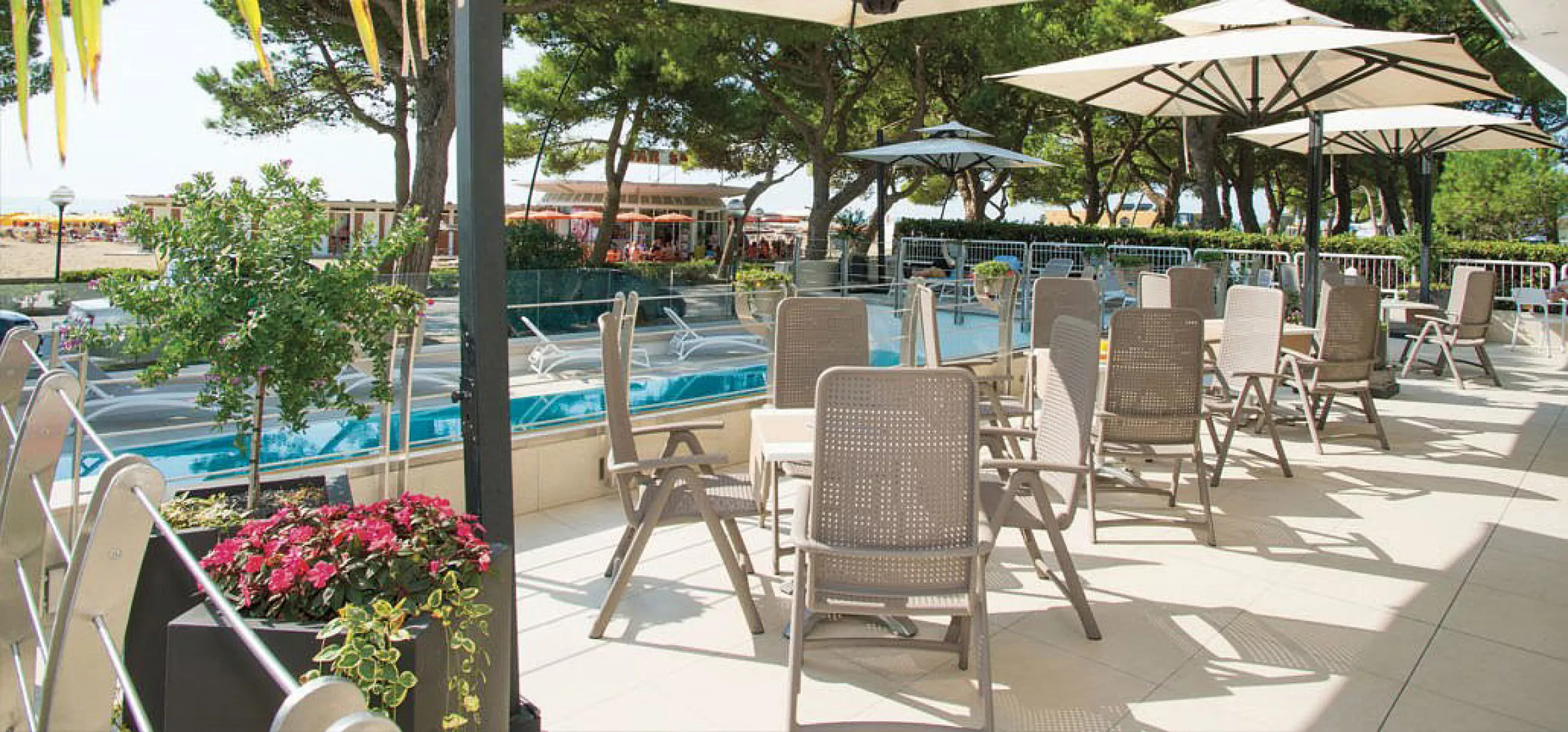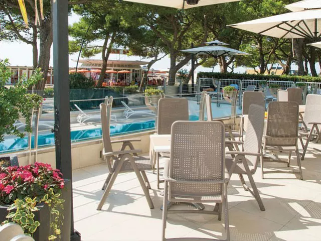 bazén, detský bazénik (vyhrievaný), slnečná terasa s ležadlami a slnečníkmi, plážový servis (slnečník a 2 ležadlá / izba), fitness zóna, požičovňa bicyklov (možné i s detskými sedačkami), zábavný kútik (doskové hry, stolný futbal, stolný tenis, …)