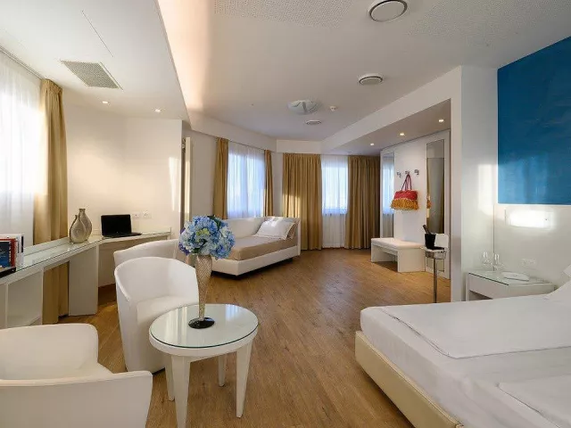 zľava 5 % na pobyty zakúpené minimálne 60 dní pred nástupom zľava „7 = 6“ na pobyty od 25.05. do 04.06. a od 06.09. do 19.09. už zahrnutá v cene deti do nedovŕšených 2 rokov je možné ubytovať v Standard 2 izbe bez nároku na lôžko, s detskou postieľkou za poplatok 25 €/noc možnosť pobytu s malým psom za poplatok 10 € / noc + povinná platba za záverečné upratovanie 35 € (na požiadanie) bezbariérové izby na požiadanie